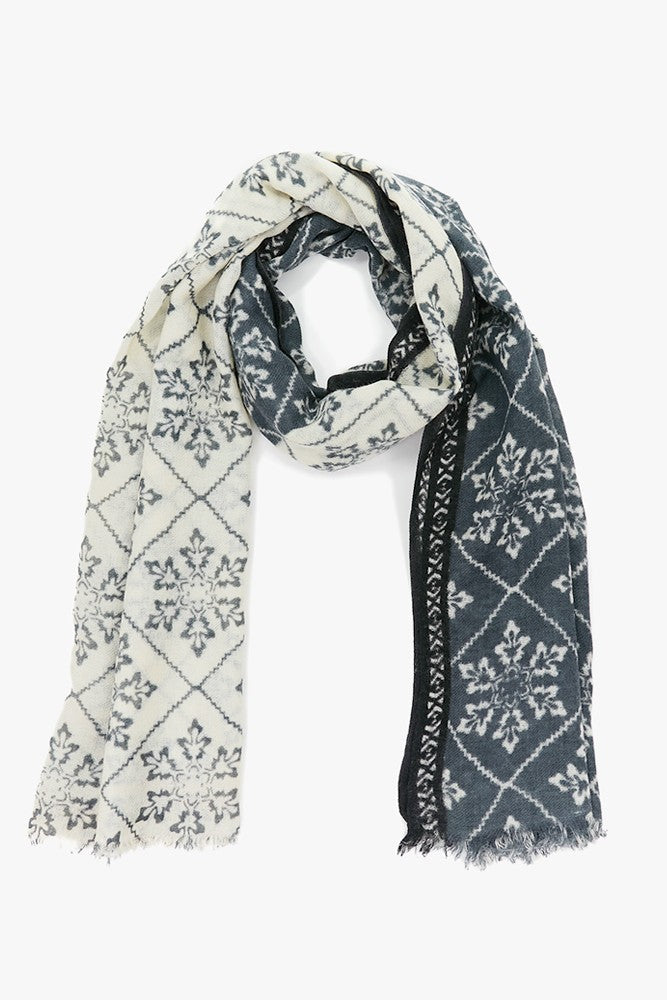 Damentuch aus Wolle mit geometrischem Muster in Grau.