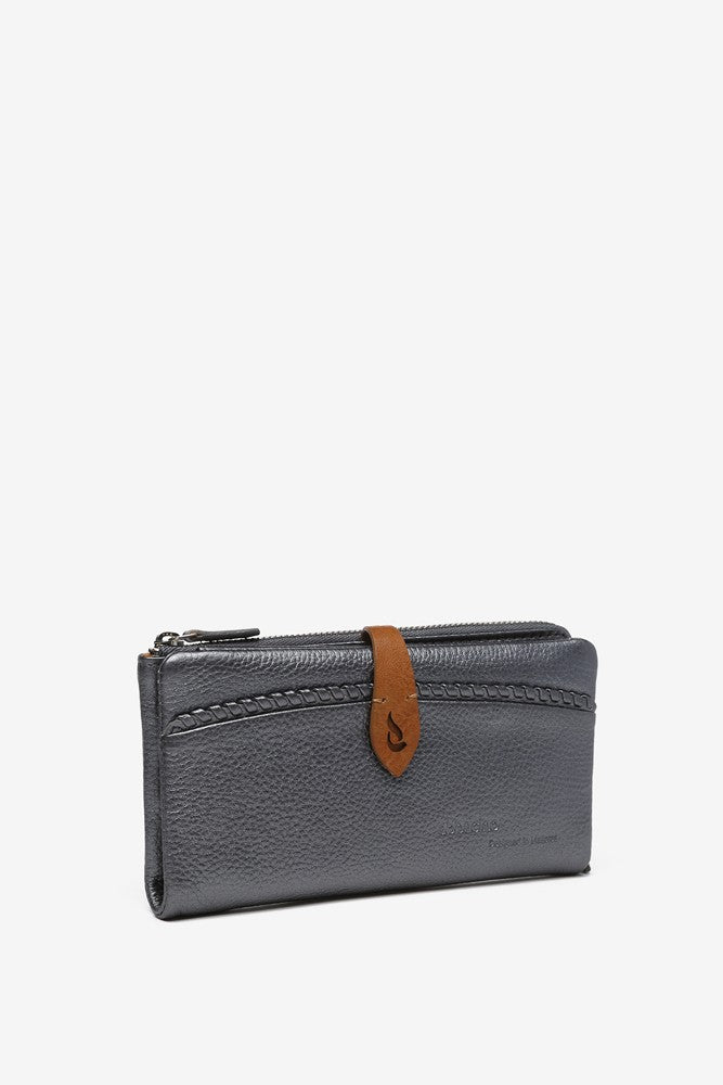 Kleine Handtasche aus recycelten Materialien in Blau.