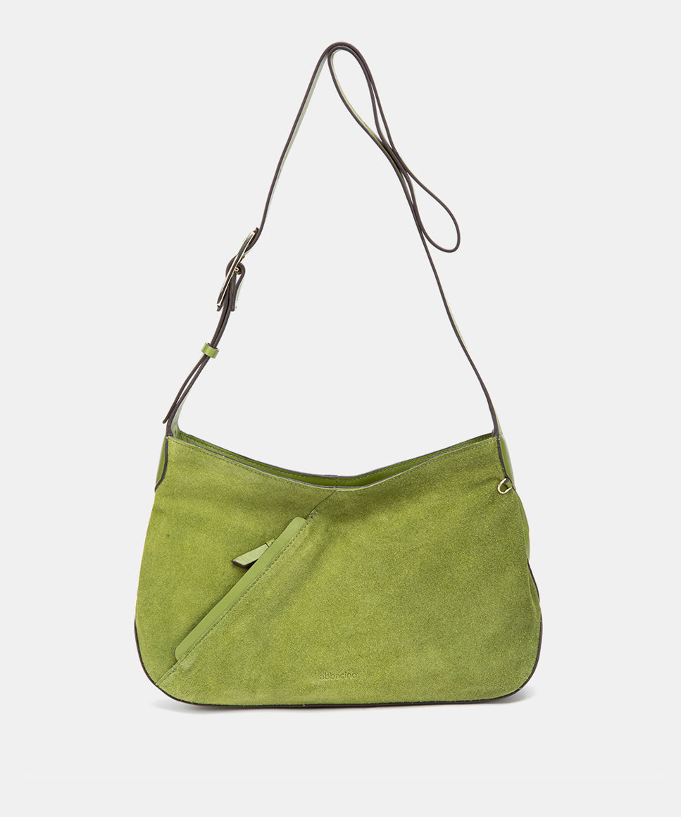 Grüne Umhängetasche aus Leder und Wildleder