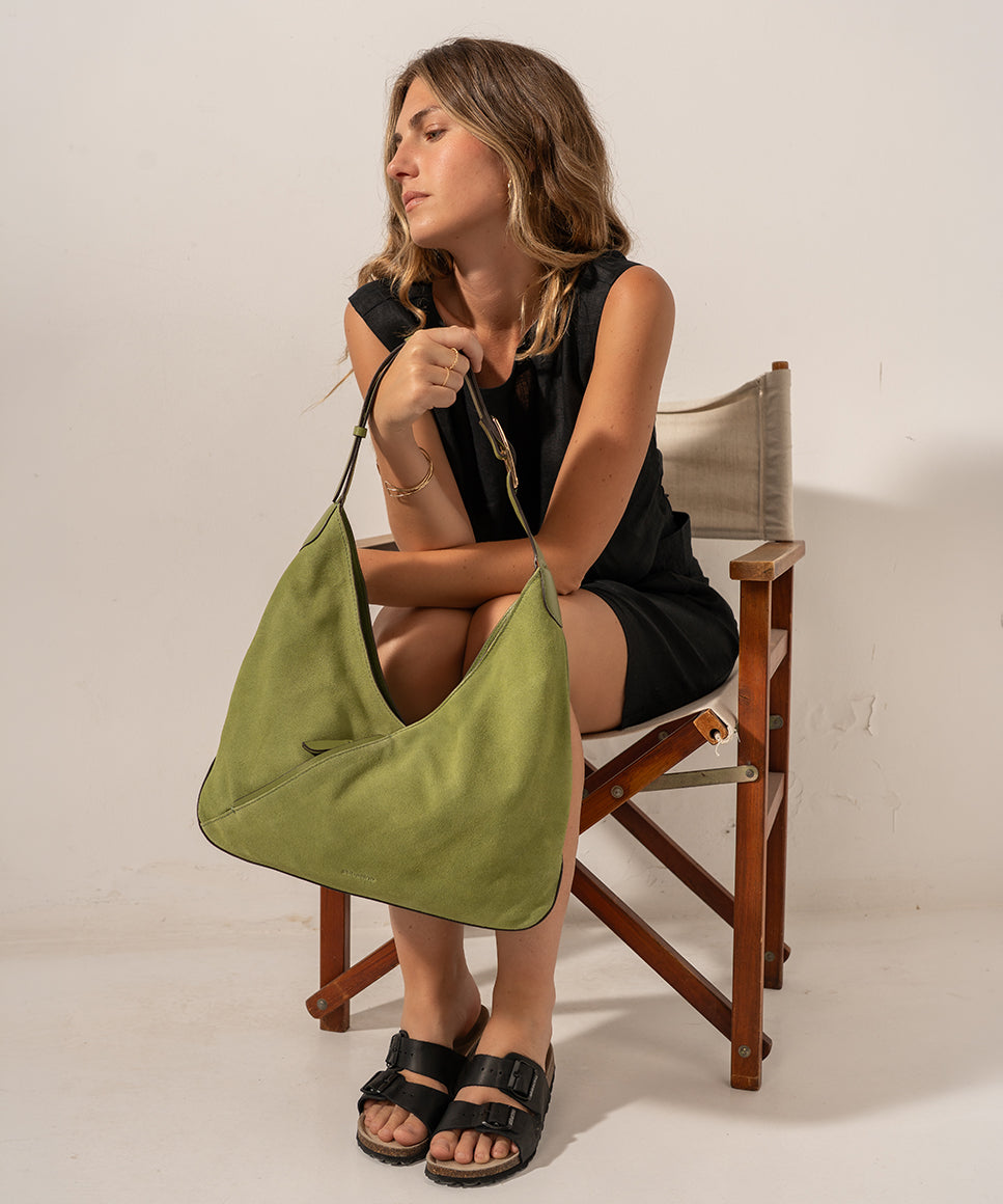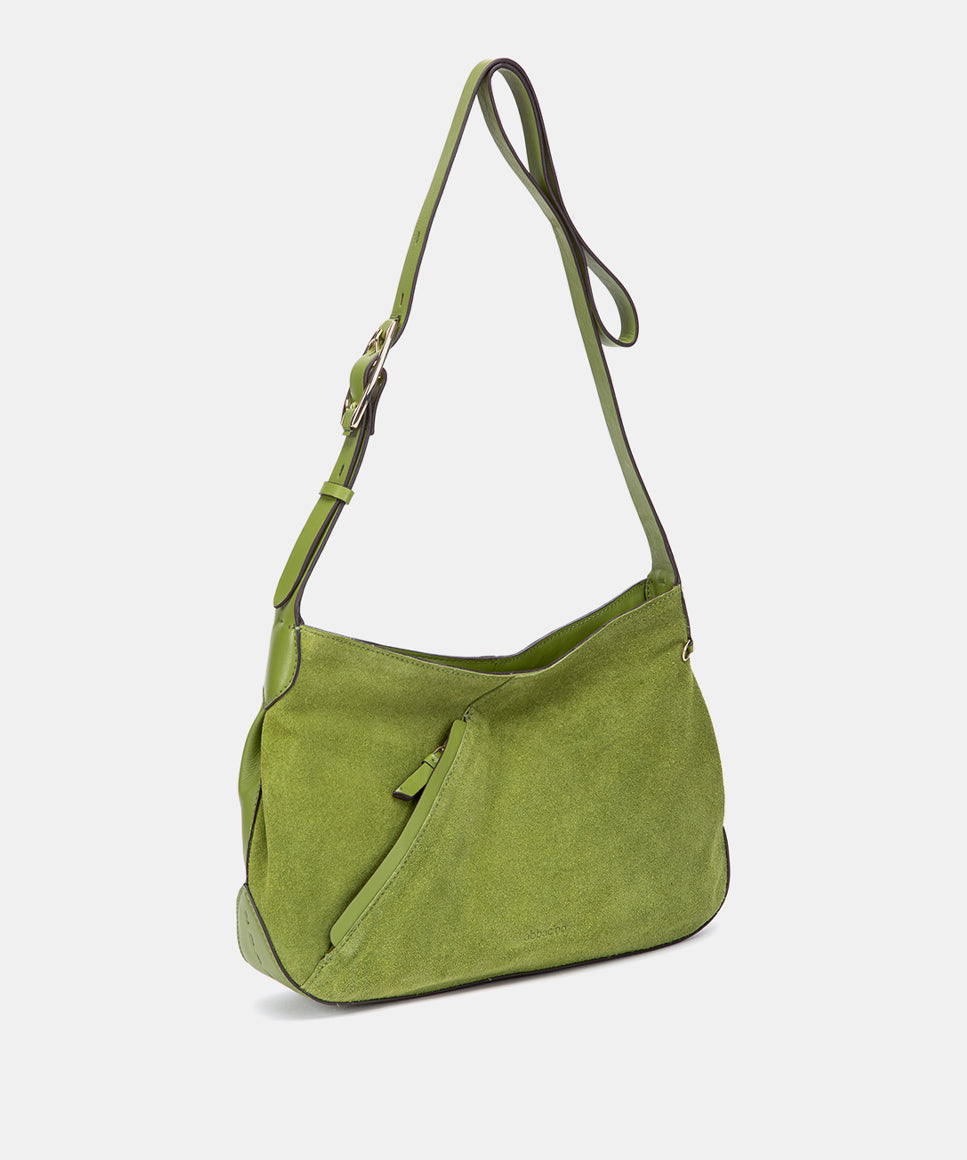 Umhängetasche aus grünem Leder und Wildleder
