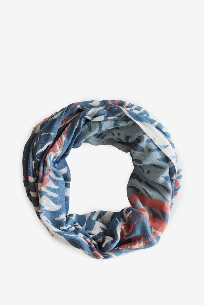 Women's viscose scarf with blue leaf print