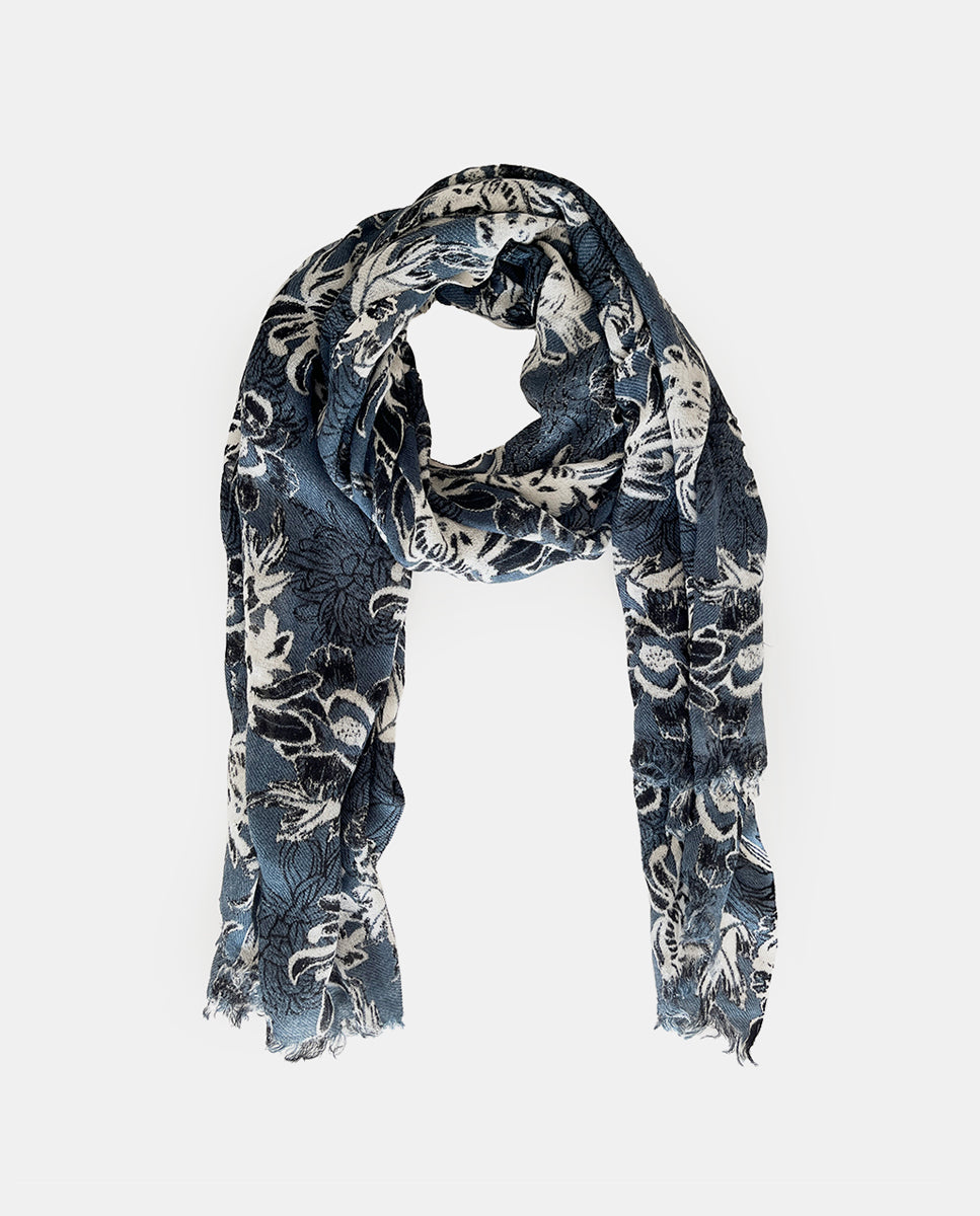 Grey floral print wool scarf