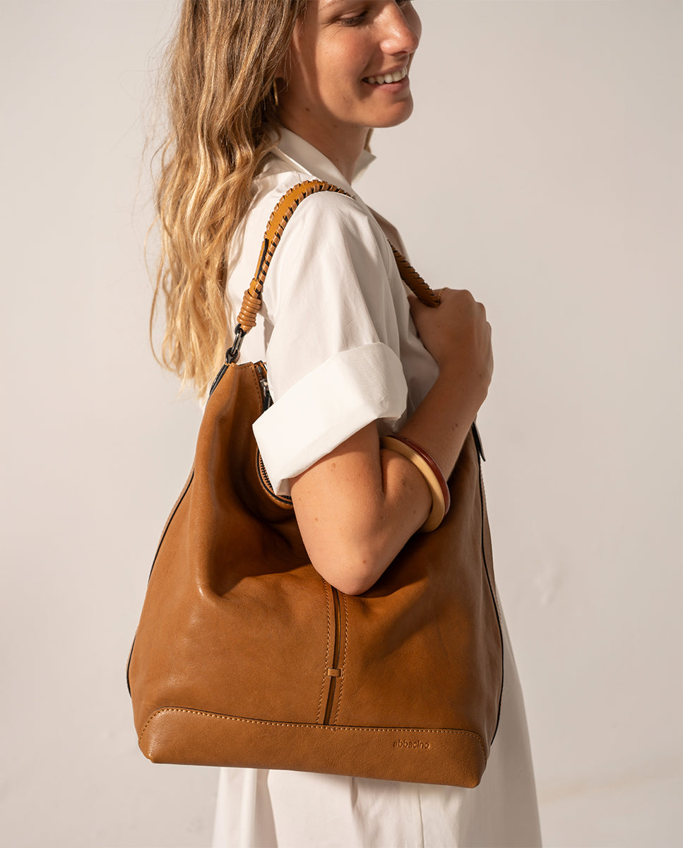Bolso de hombro en piel cognac