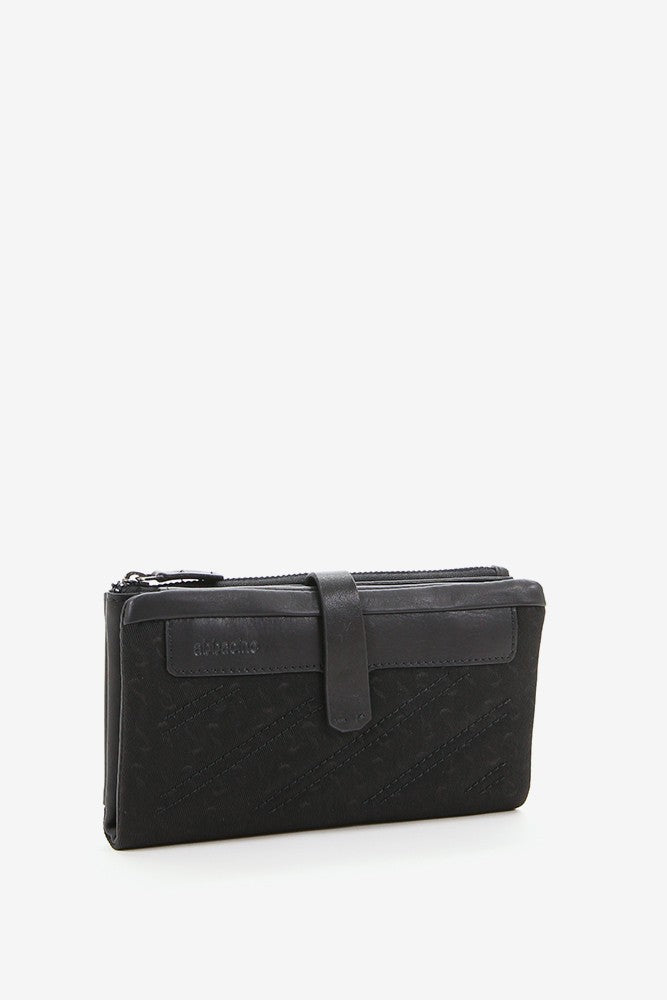 Large black jacquard women's wallet