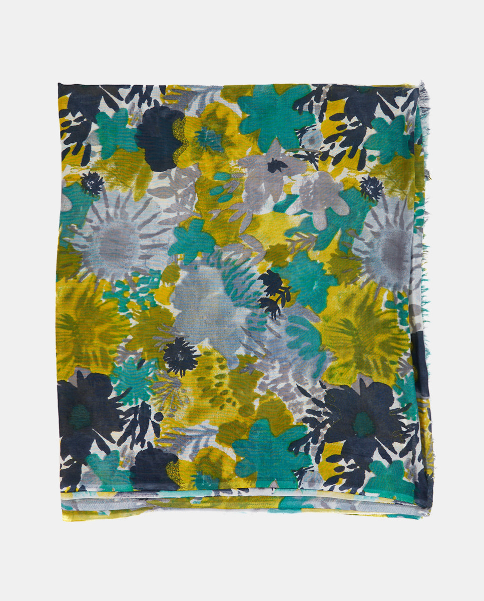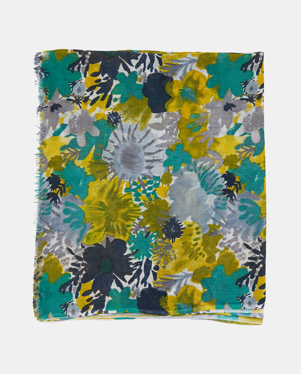 Pañuelo de viscosa con estampado floral verde