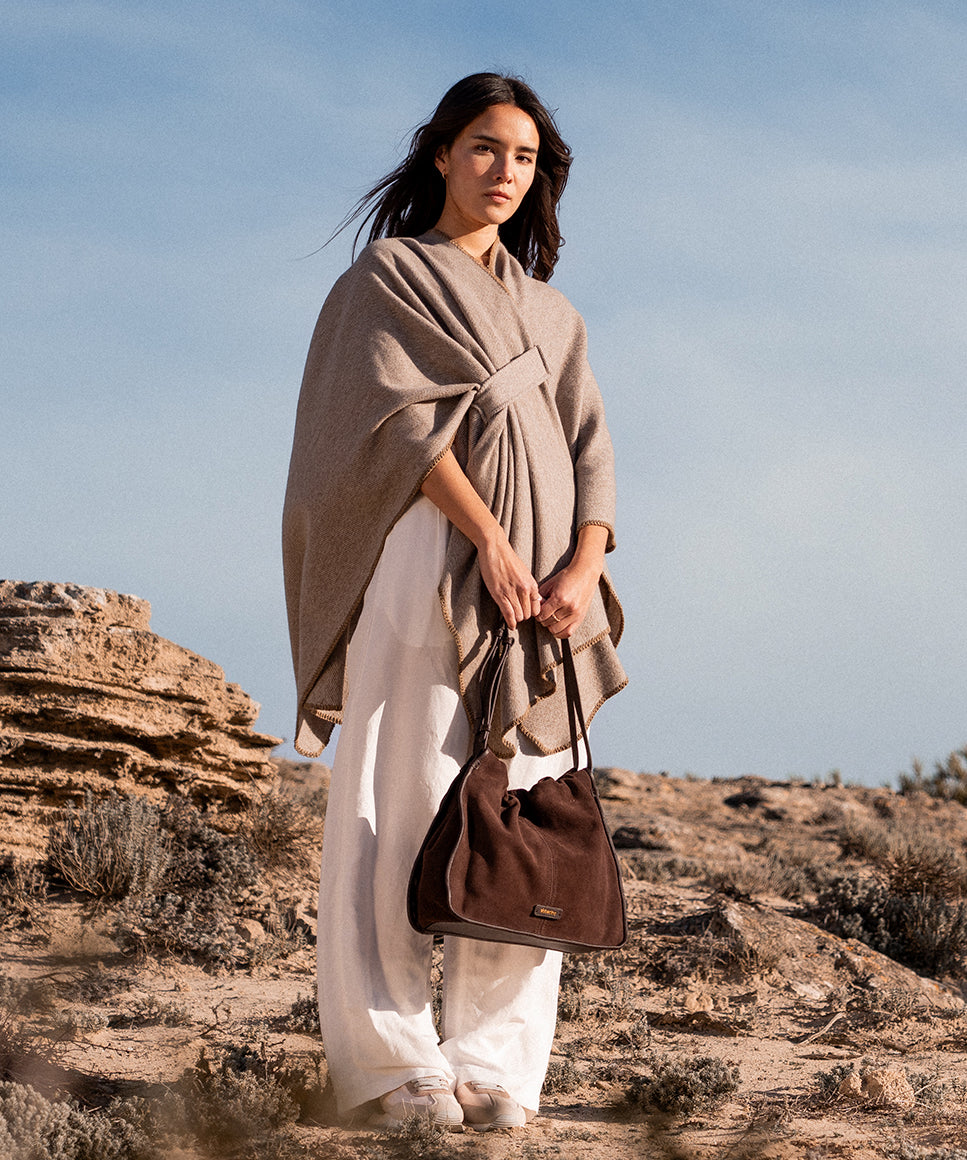 Brown poncho with bow