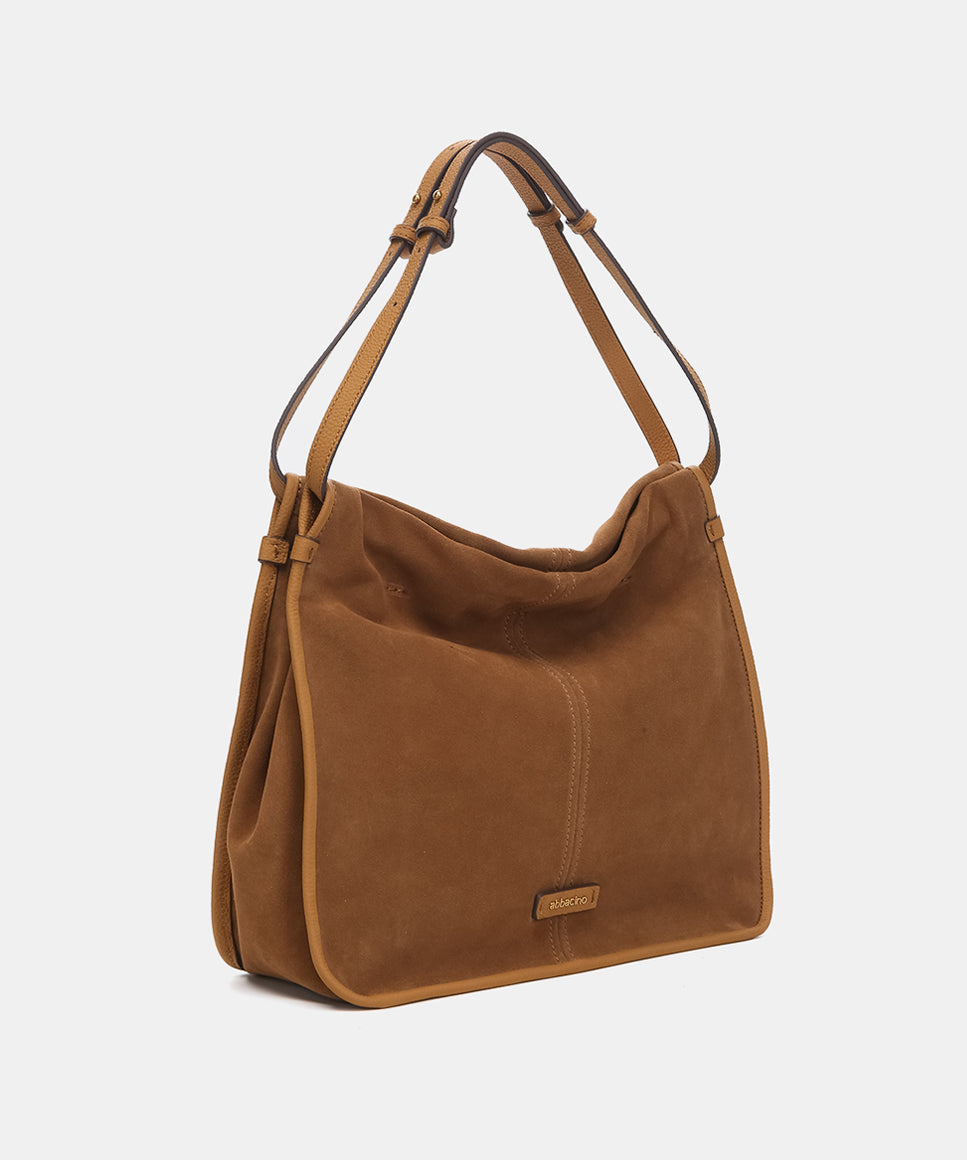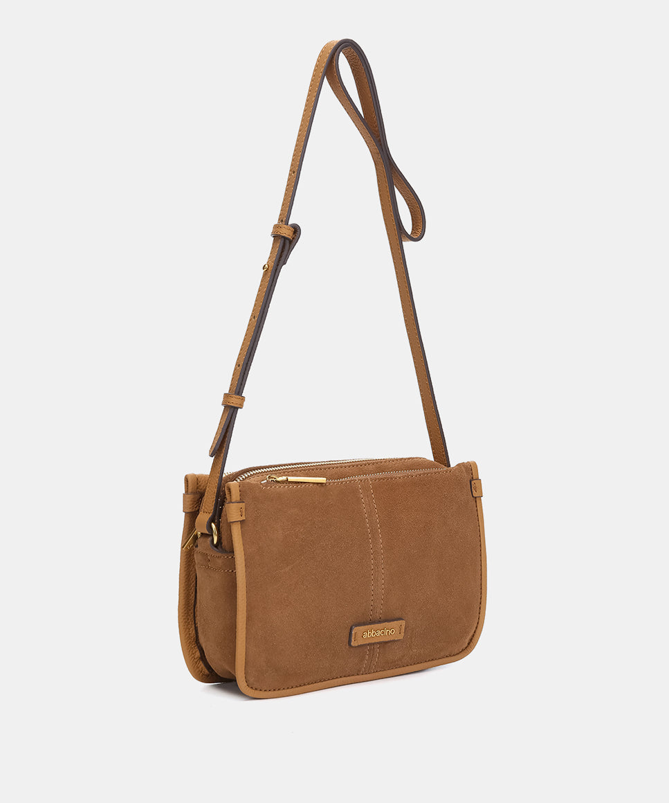Shoulder bag in cognac suede