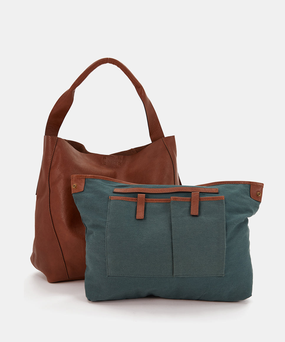 Multifunctional bag made from recycled materials cognac