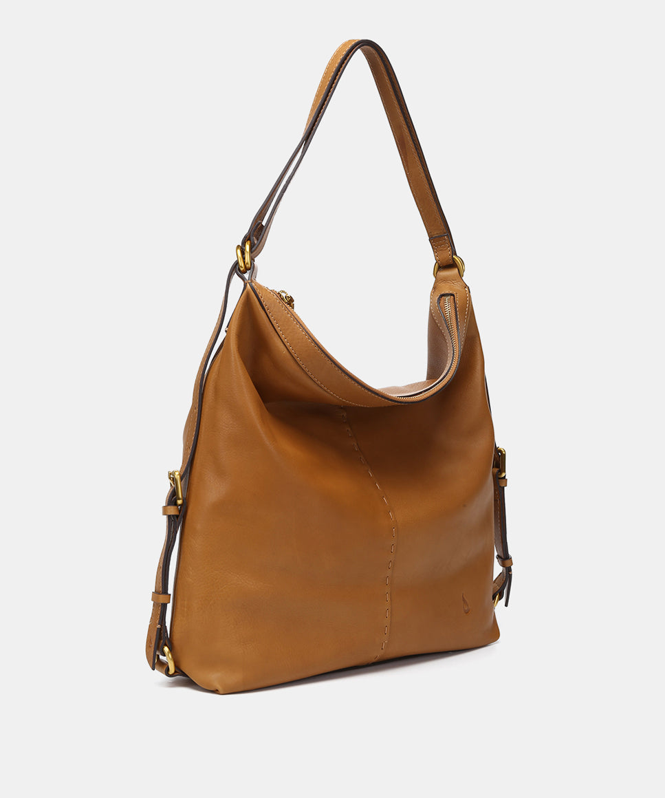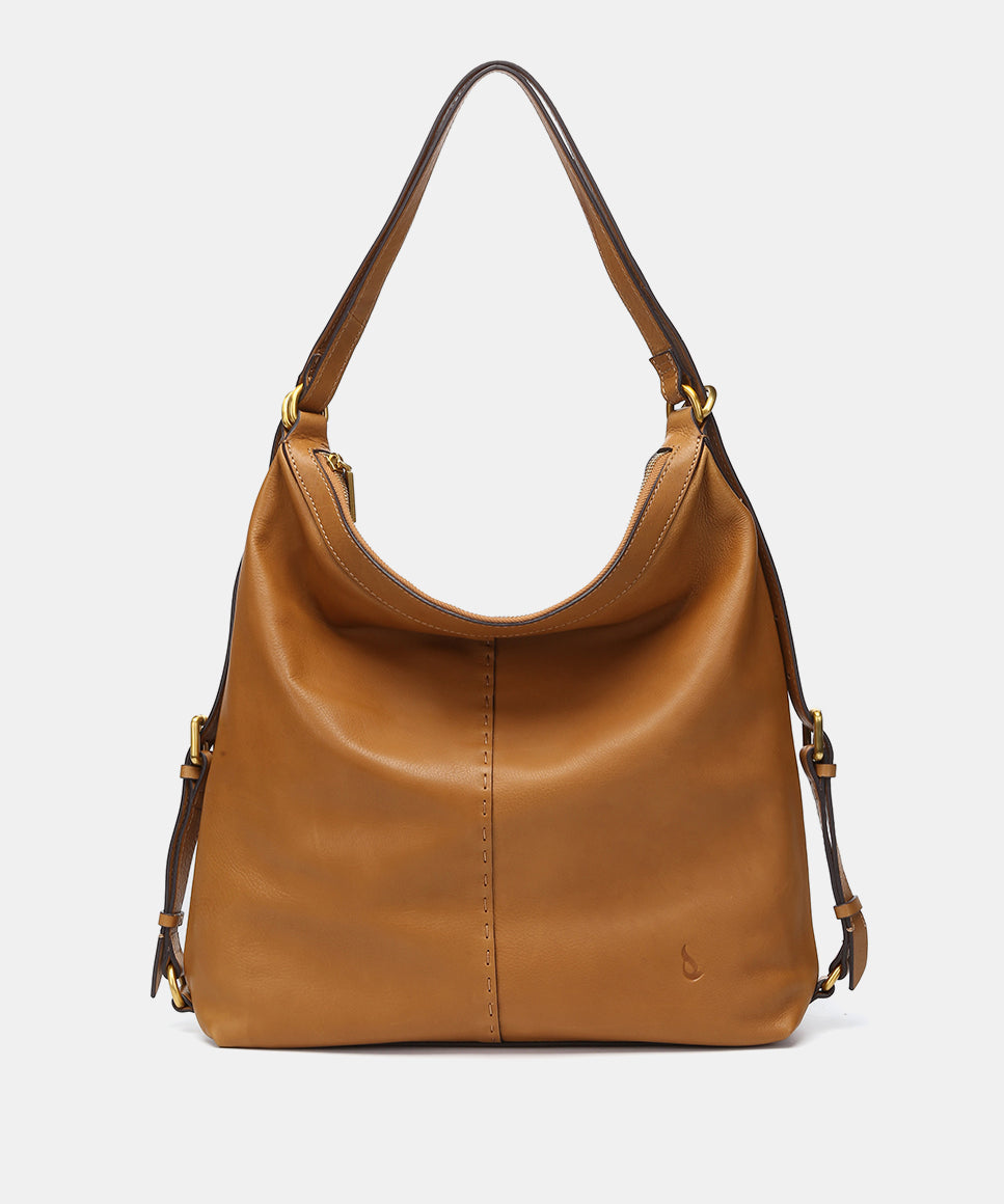 Multifunctional bag in cognac leather