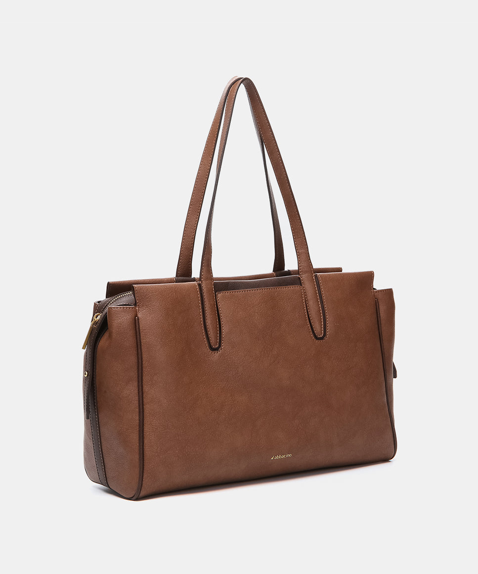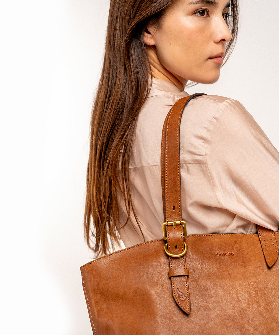 Shopper bag in cognac leather