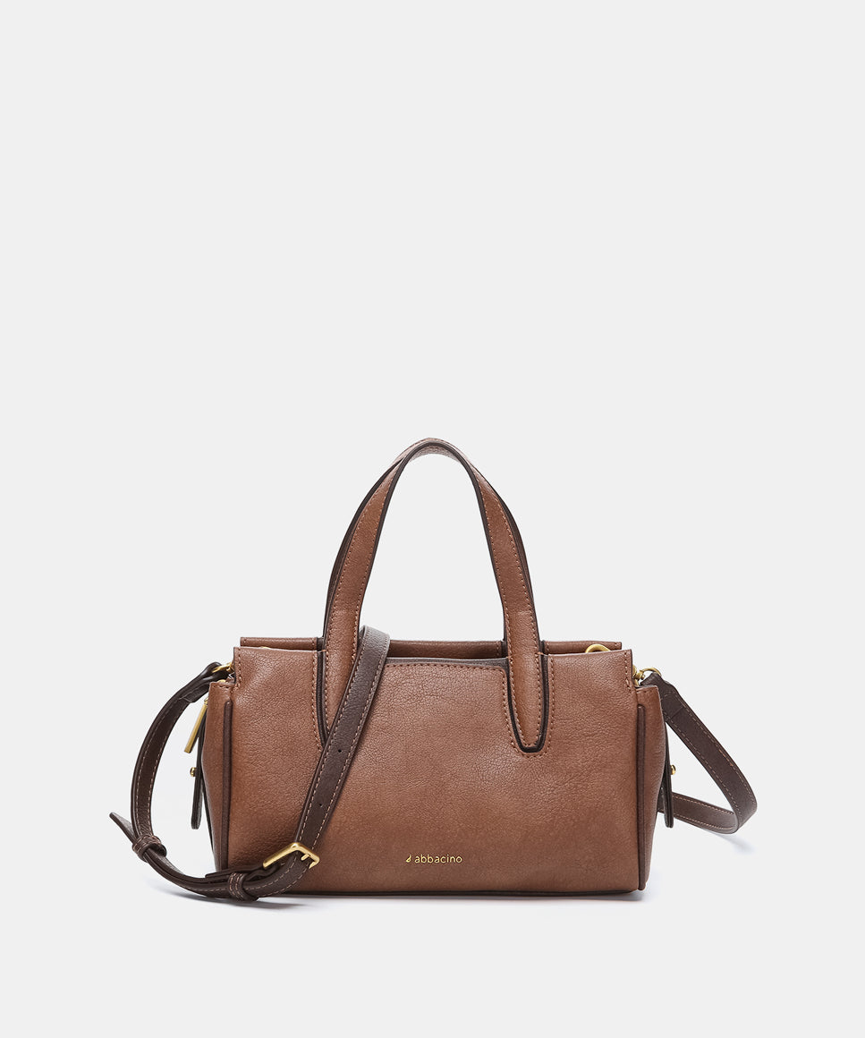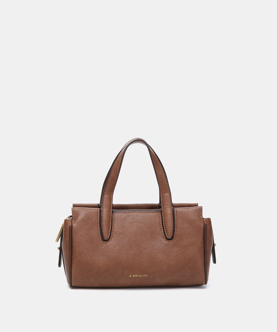 Handbag in cognac recycled materials