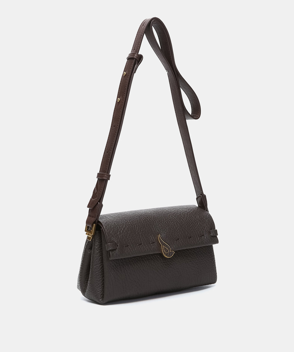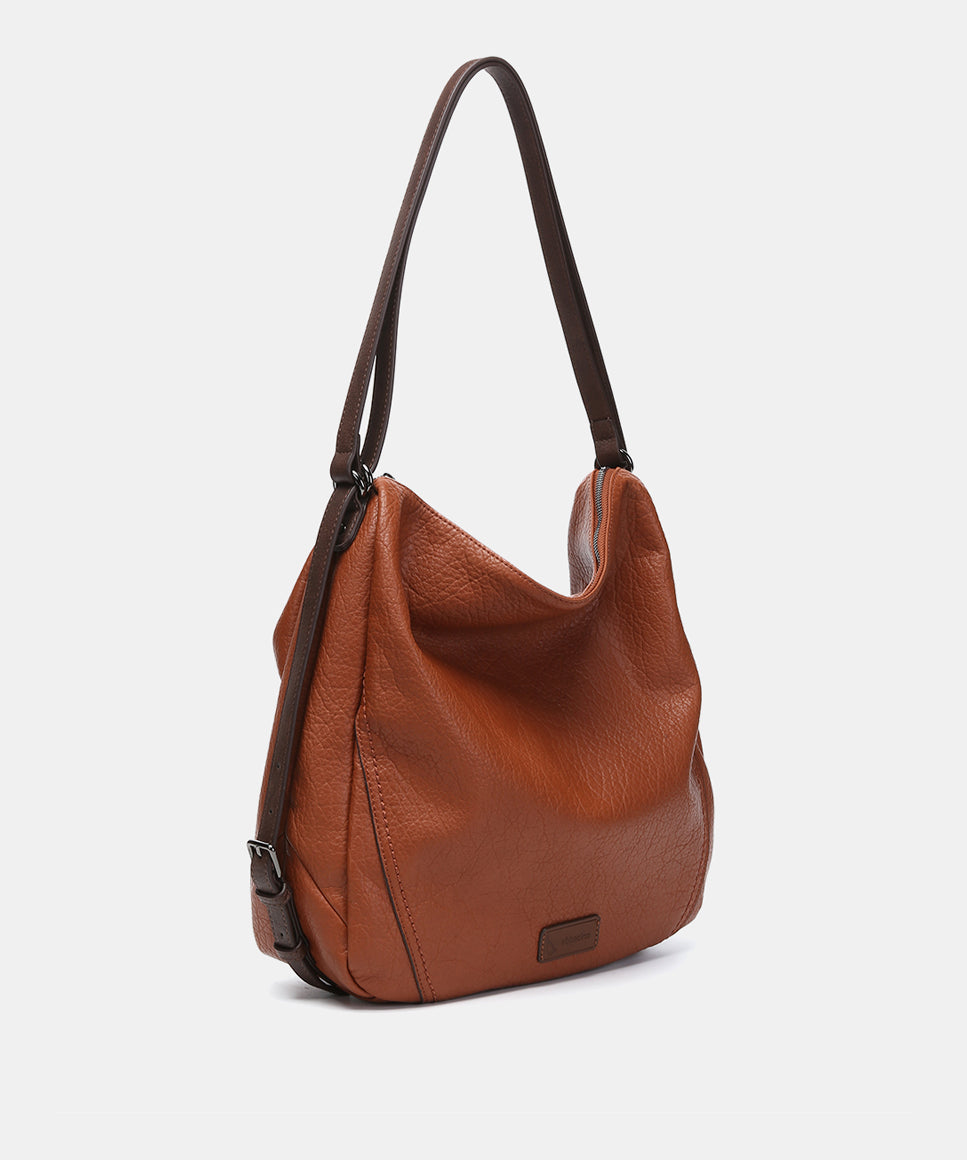 Shoulder bag in cognac recycled materials