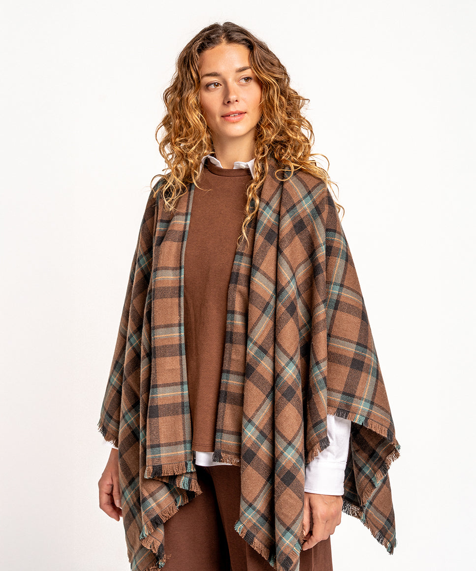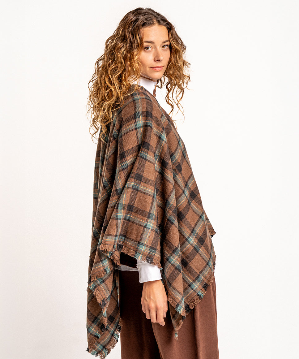 Brown plaid poncho