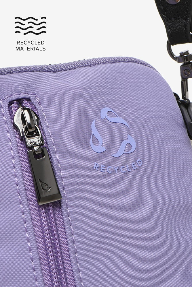 Women's mobile phone bag made from recycled fabric. A super practical format to carry your essentials with you at all times without taking up too much space. A model that combines functionality with sustainability and comes in fresh, seasonal colours.
