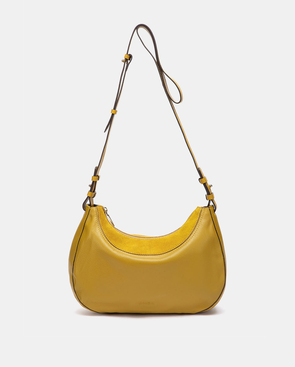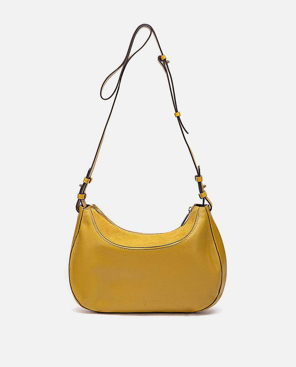 Yellow leather and suede crossbody bag