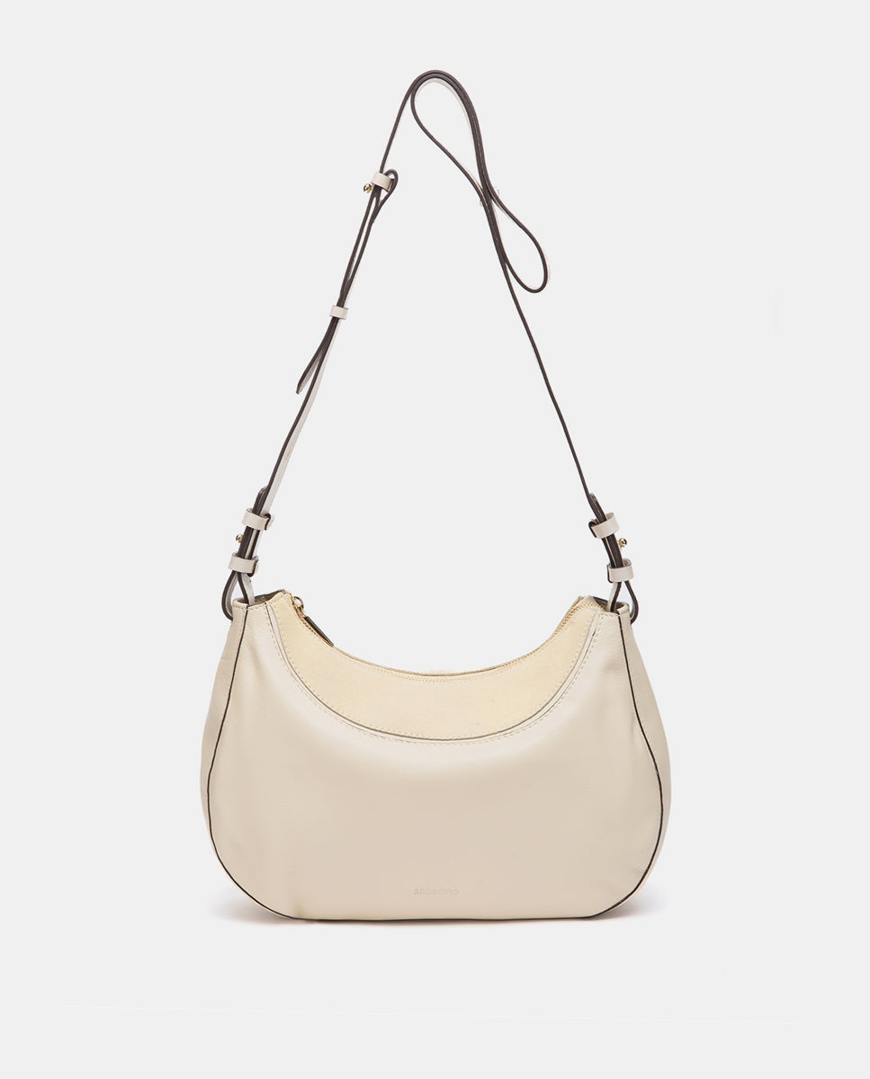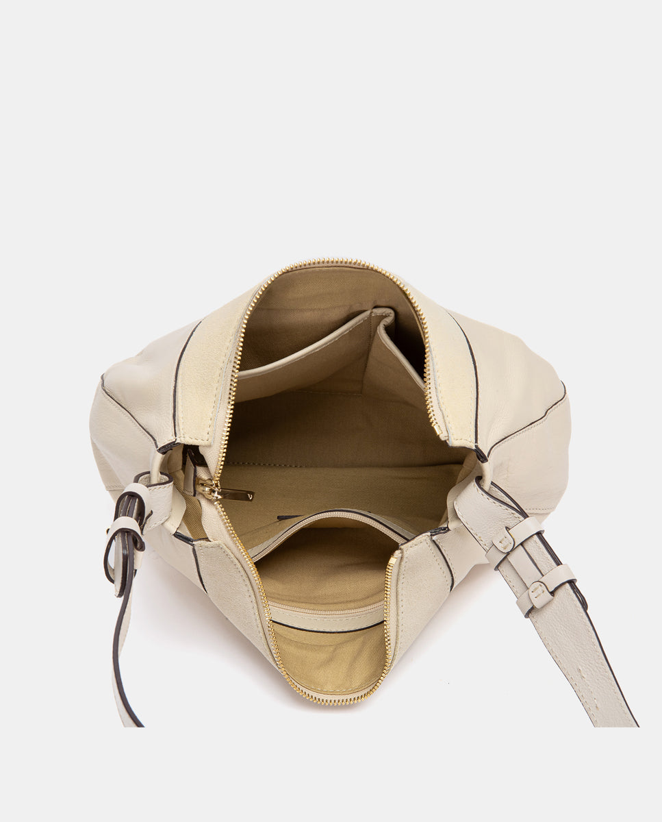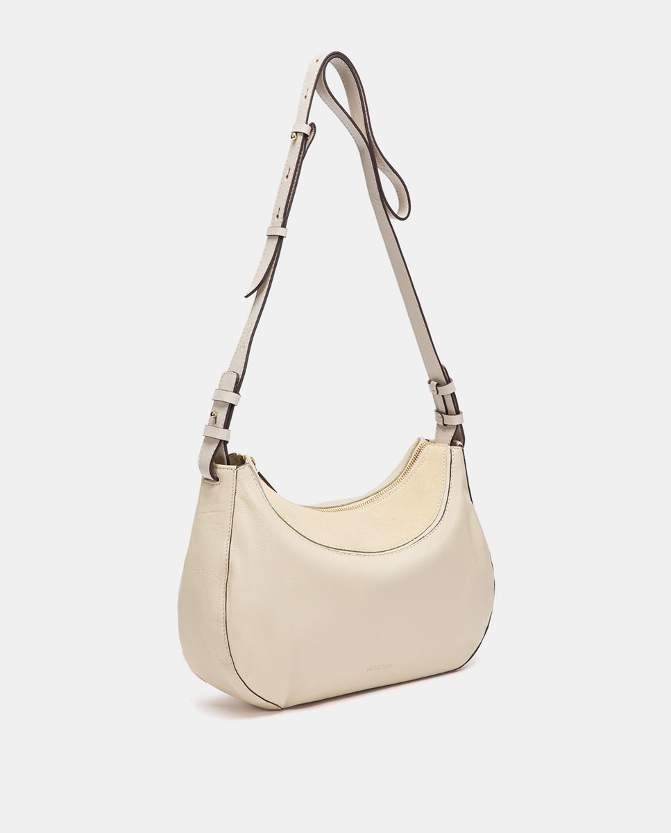 Beige leather and suede crossbody bag