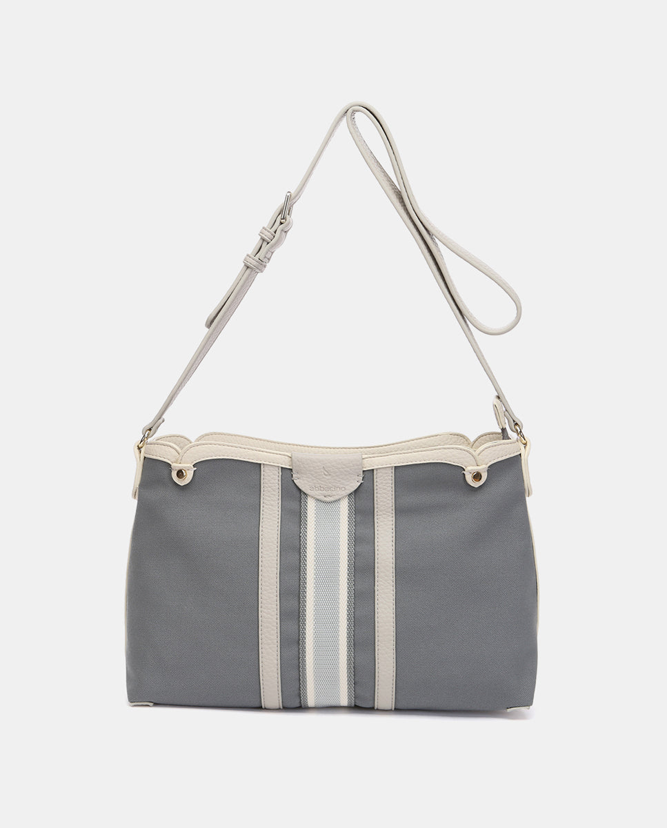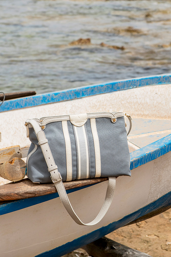 Crossbody bag for women made from recycled fabrics. A fluid and lightweight design with a clear Mediterranean influence and a strong navy style. Casual in nature, it will become the perfect companion for spring and summer days. Its main features are: