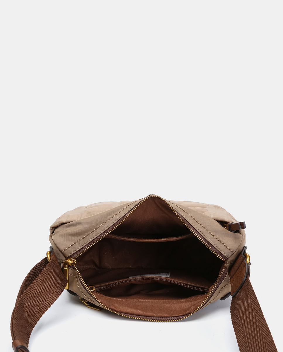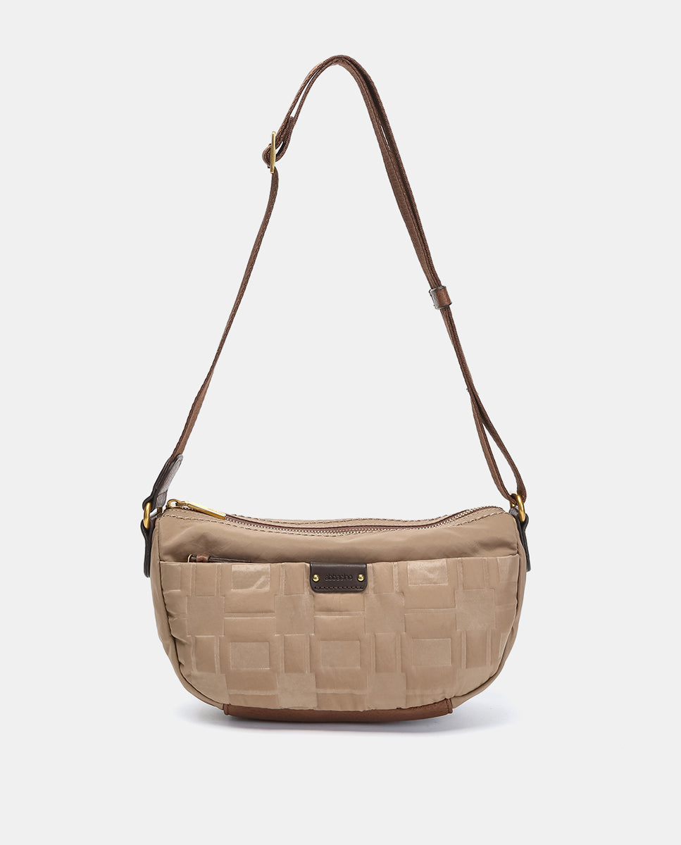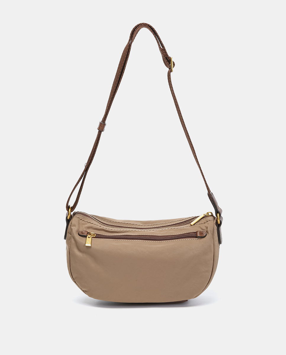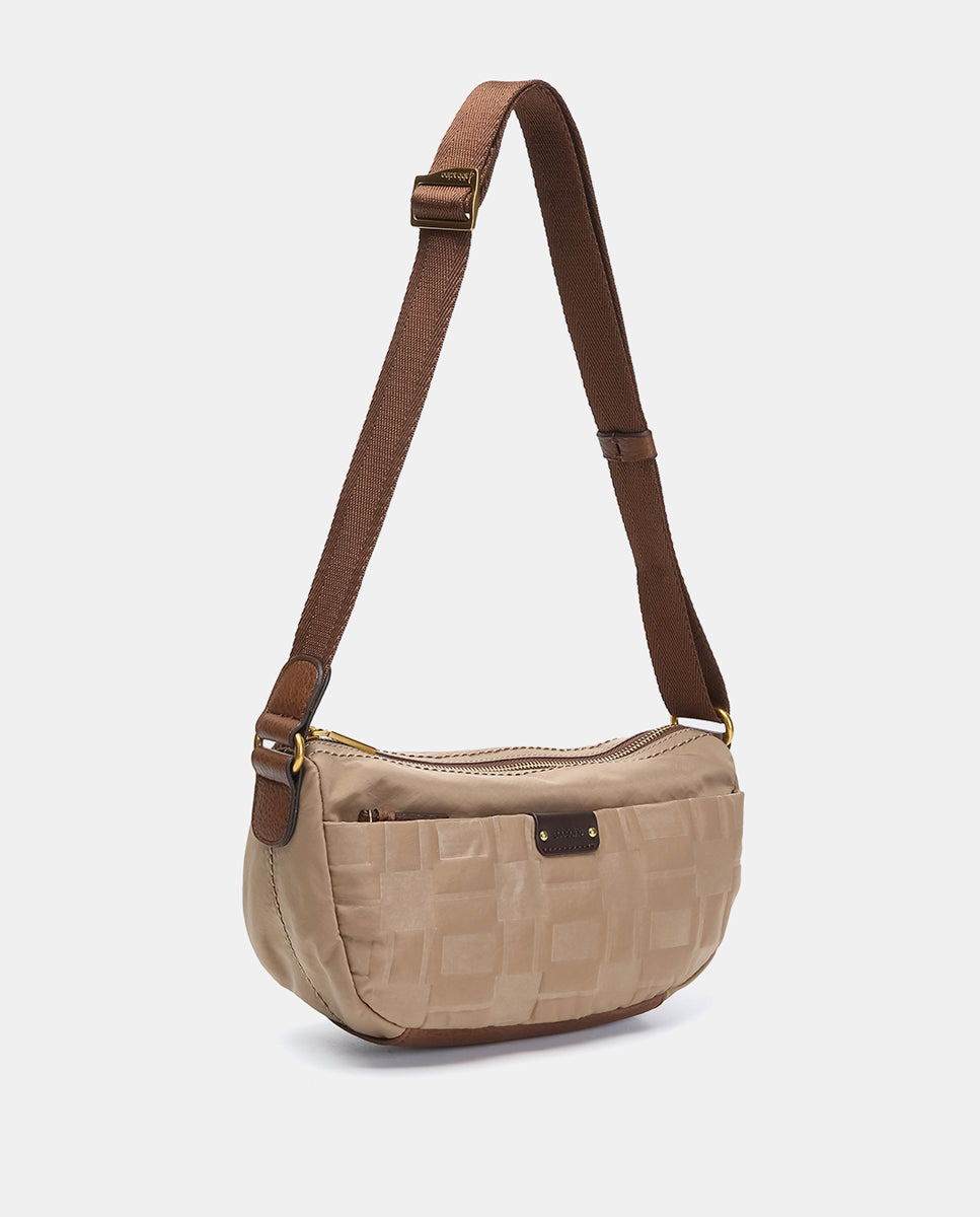 Small camel recycled nylon shoulder bag