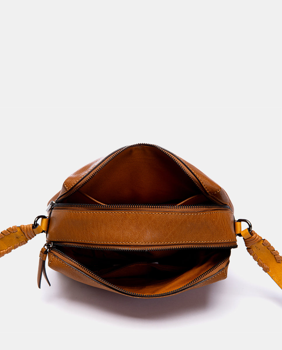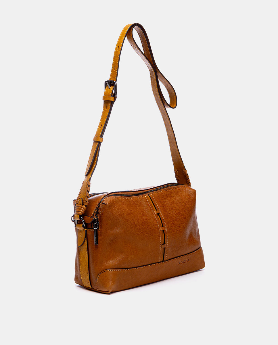 Bandolera pequeña de mujer elaborada en piel Premium con un diseño de corte clásico que la convierte en un fondo de armario atemporal. Sus principales características son:
