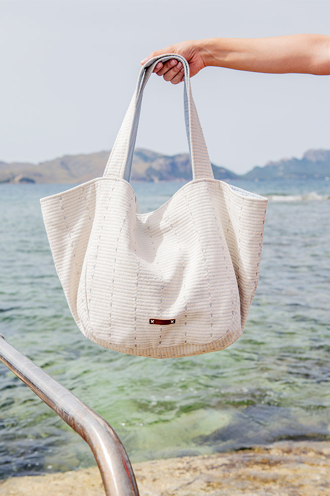 Large capacity beach bag made from cotton. A design that stands out for its loose fabric and its print with metallic details. Its main features are: