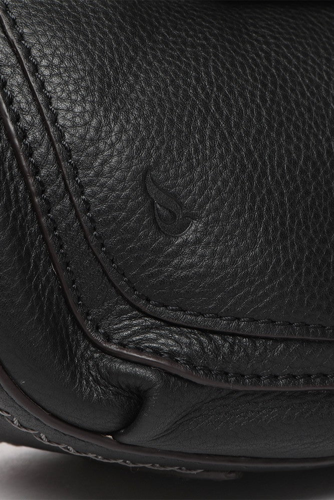 • On the outside, there is a large pocket and the brand's logo subtly engraved.