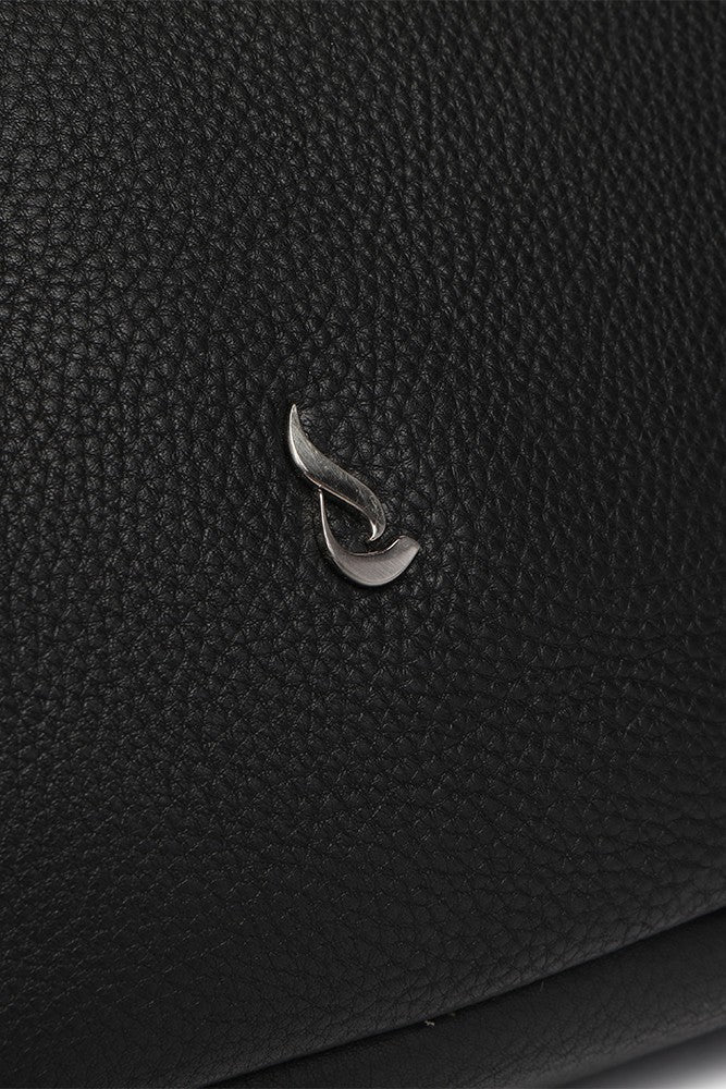 • On the front, it has the brand's logo on a small metallic appliqué.