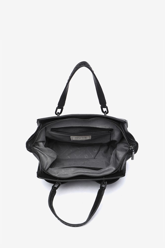 Black handbag made of recycled materials
