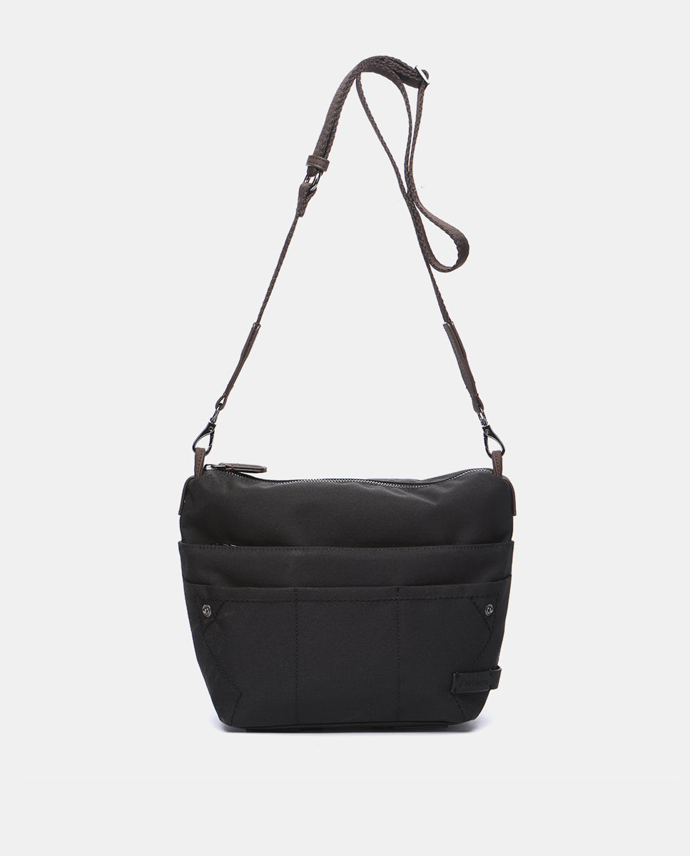 Bag organiser made from recycled materials and environmentally friendly processes. A multifunctional accessory to use as a shoulder bag or as an organiser inside a larger bag.