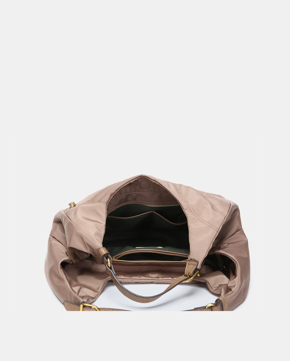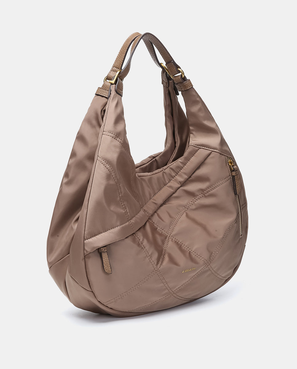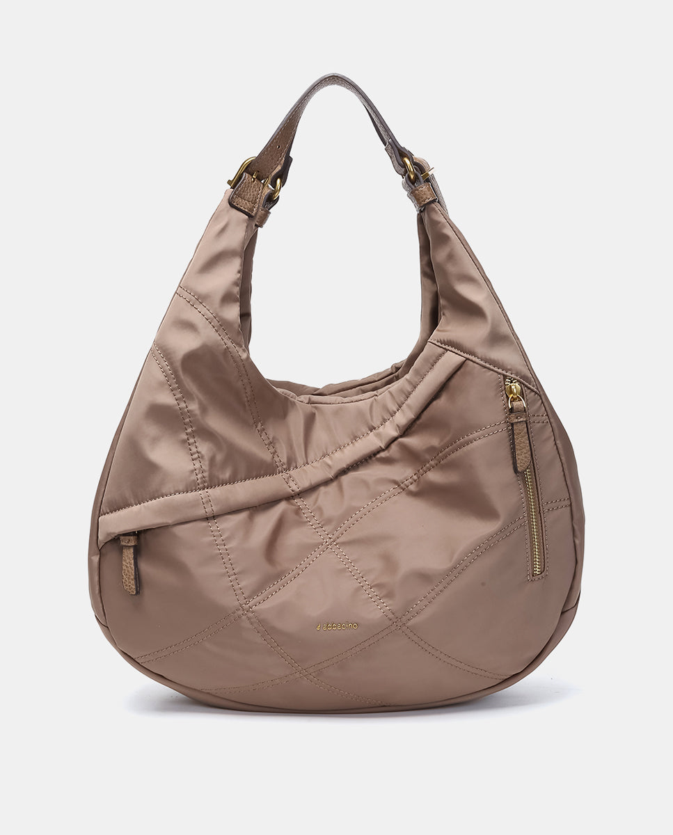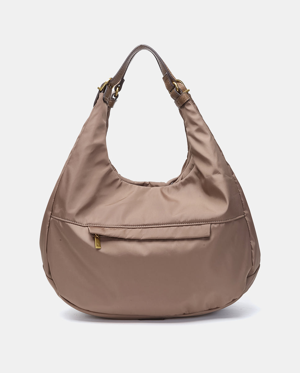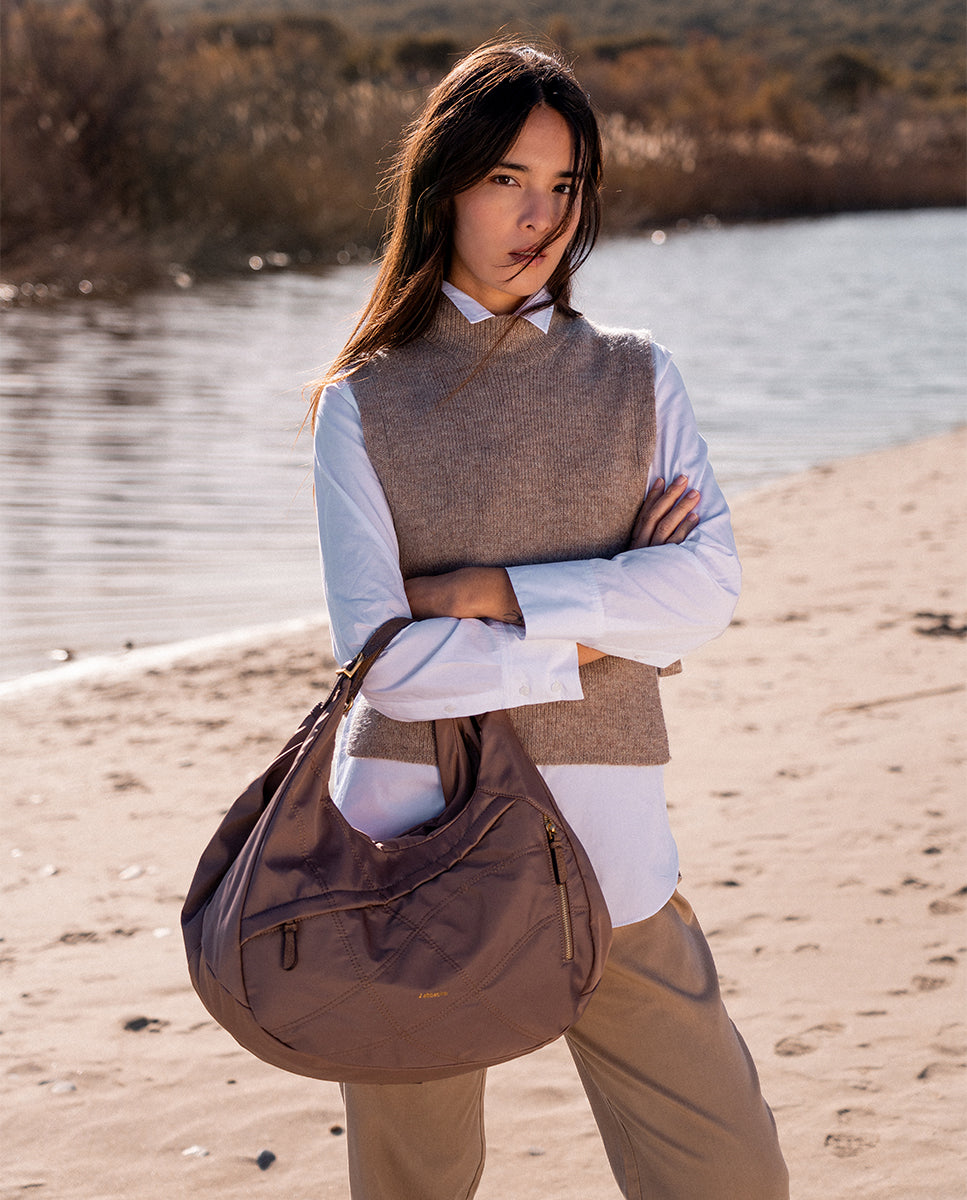 Women's hobo-style shoulder bag made from recycled fabric with a satin finish. Sporty and functional, it's ideal for fall and winter thanks to its seasonal colors. Practical and stylish, it's perfect for everyday wear. Its main features are: