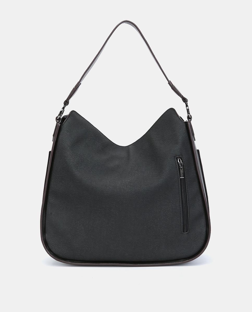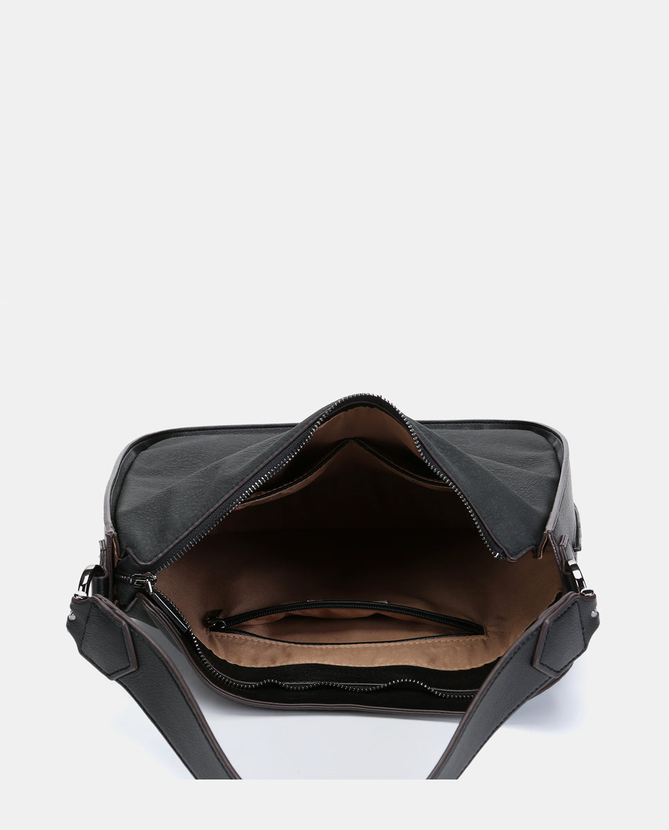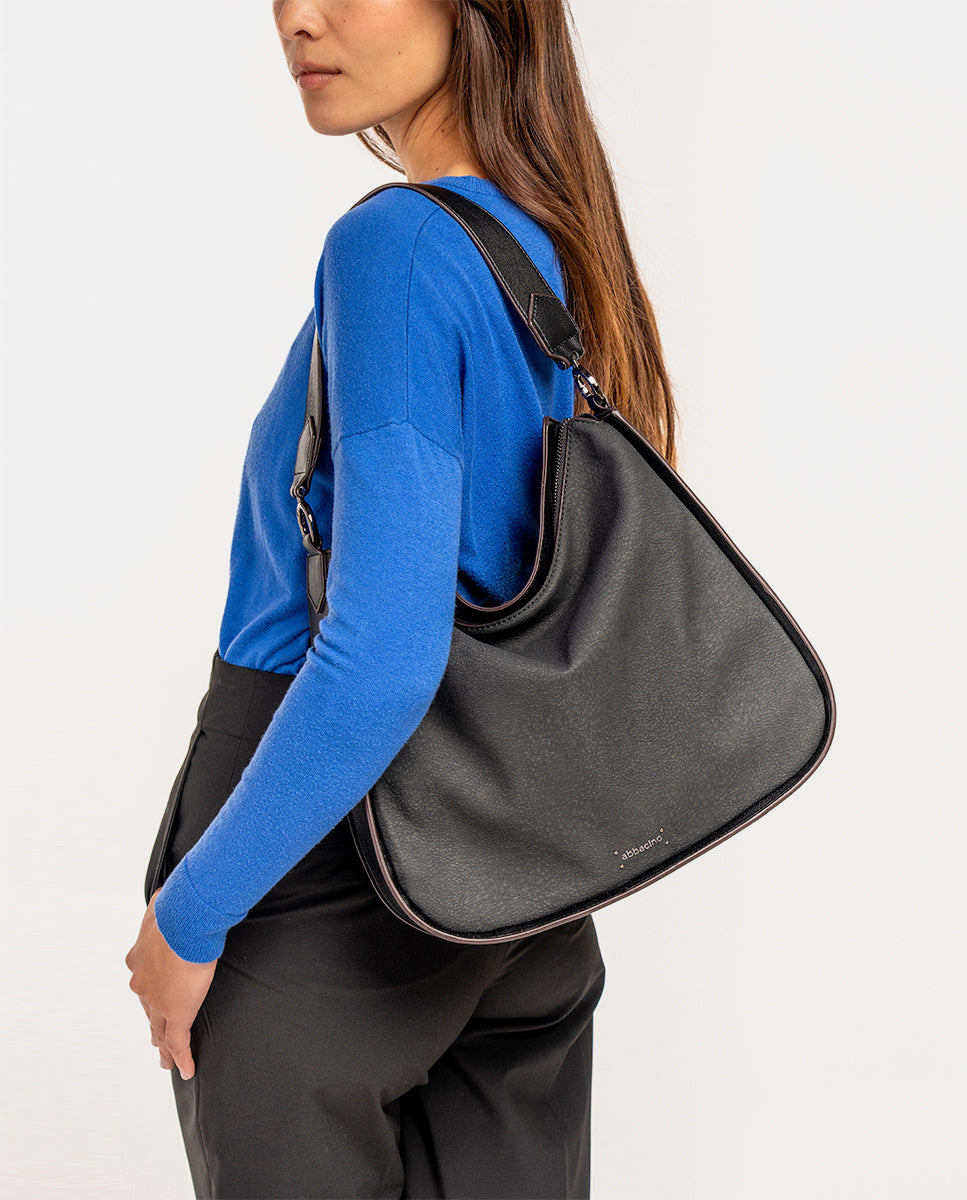 Shoulder bag in black recycled materials