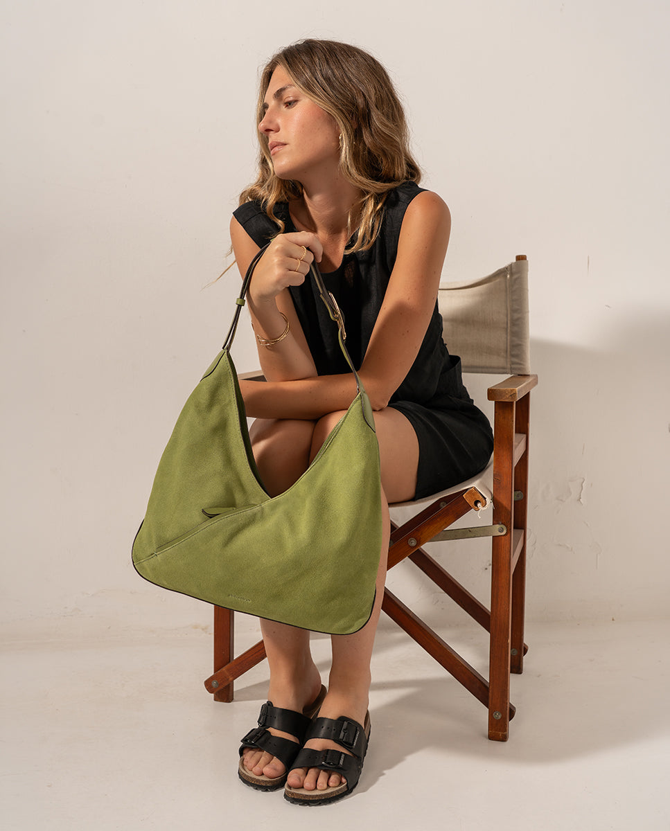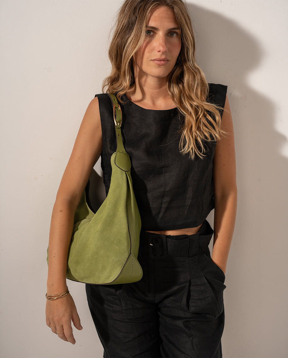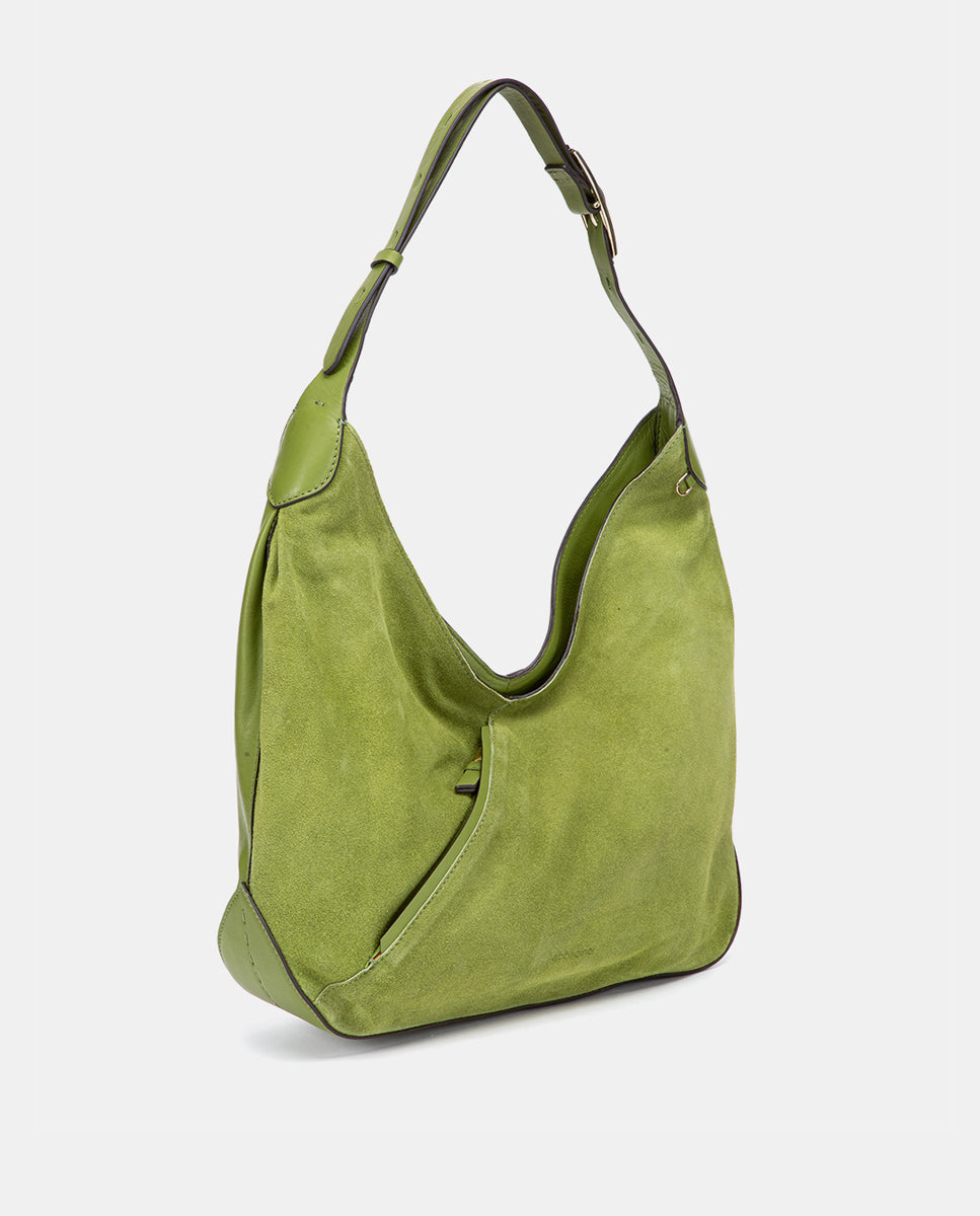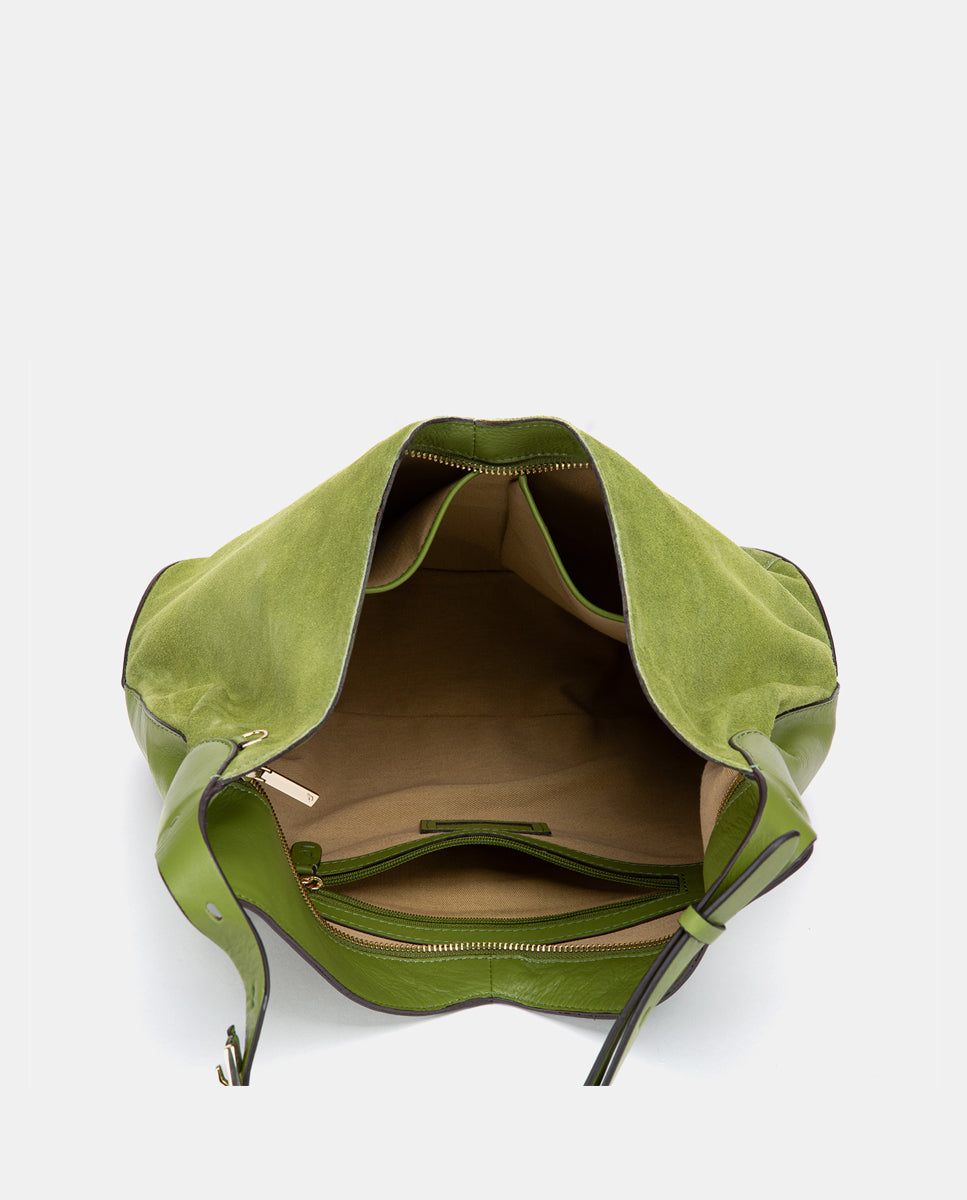 Green leather and suede shoulder bag