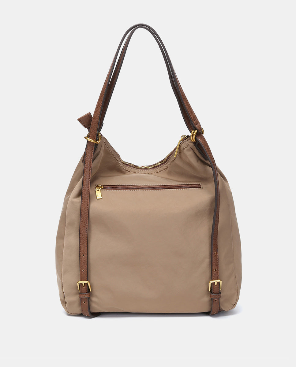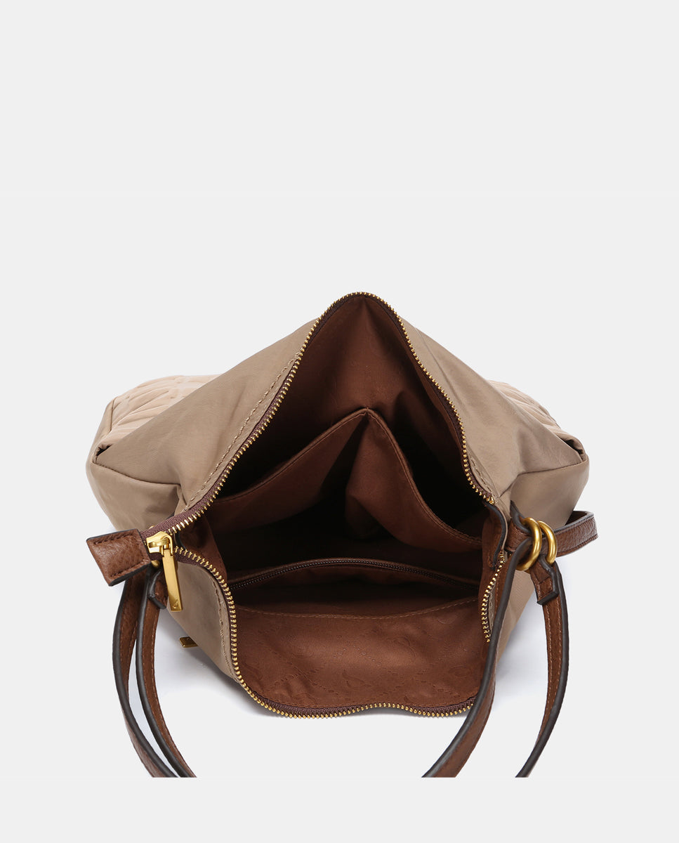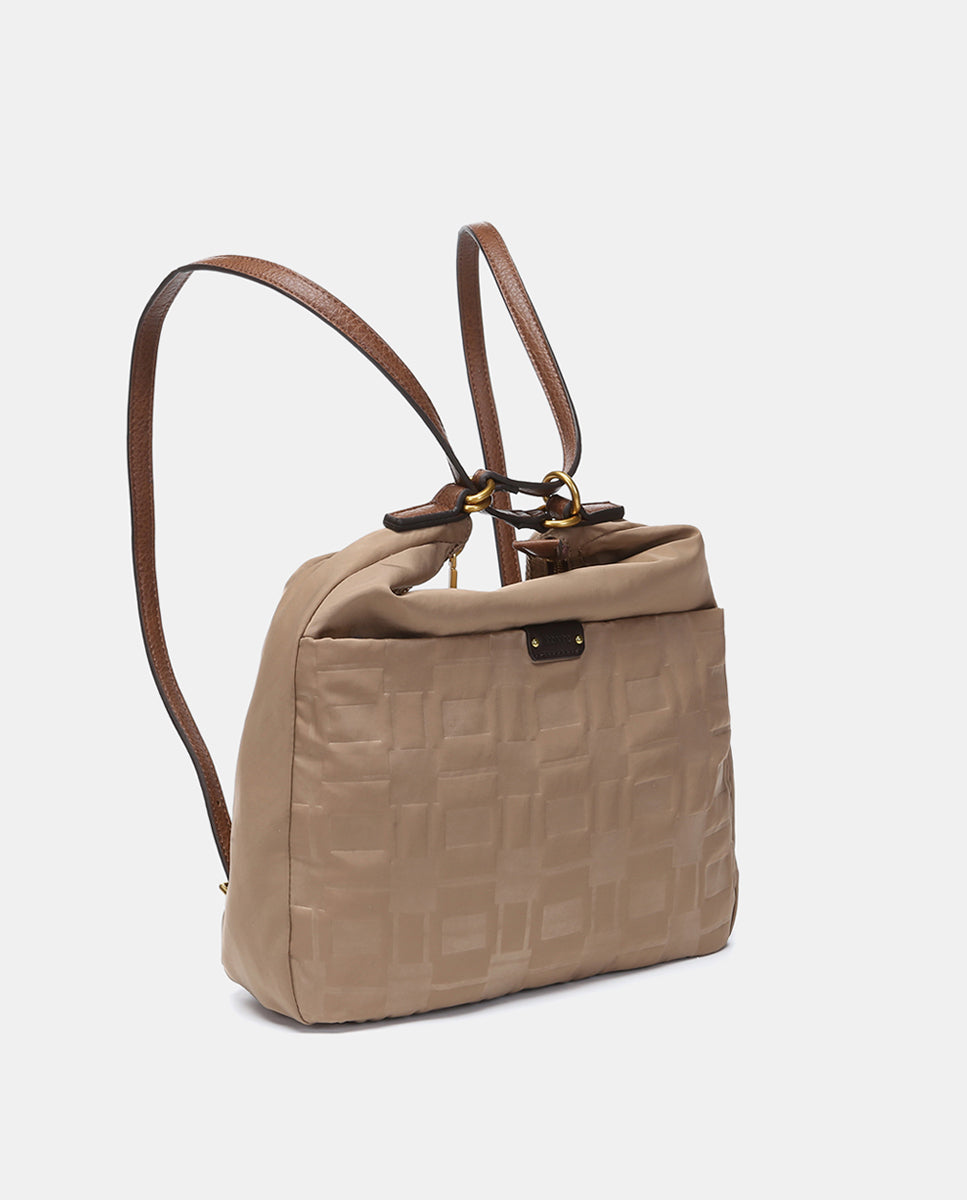 Multifunctional bag in recycled camel nylon