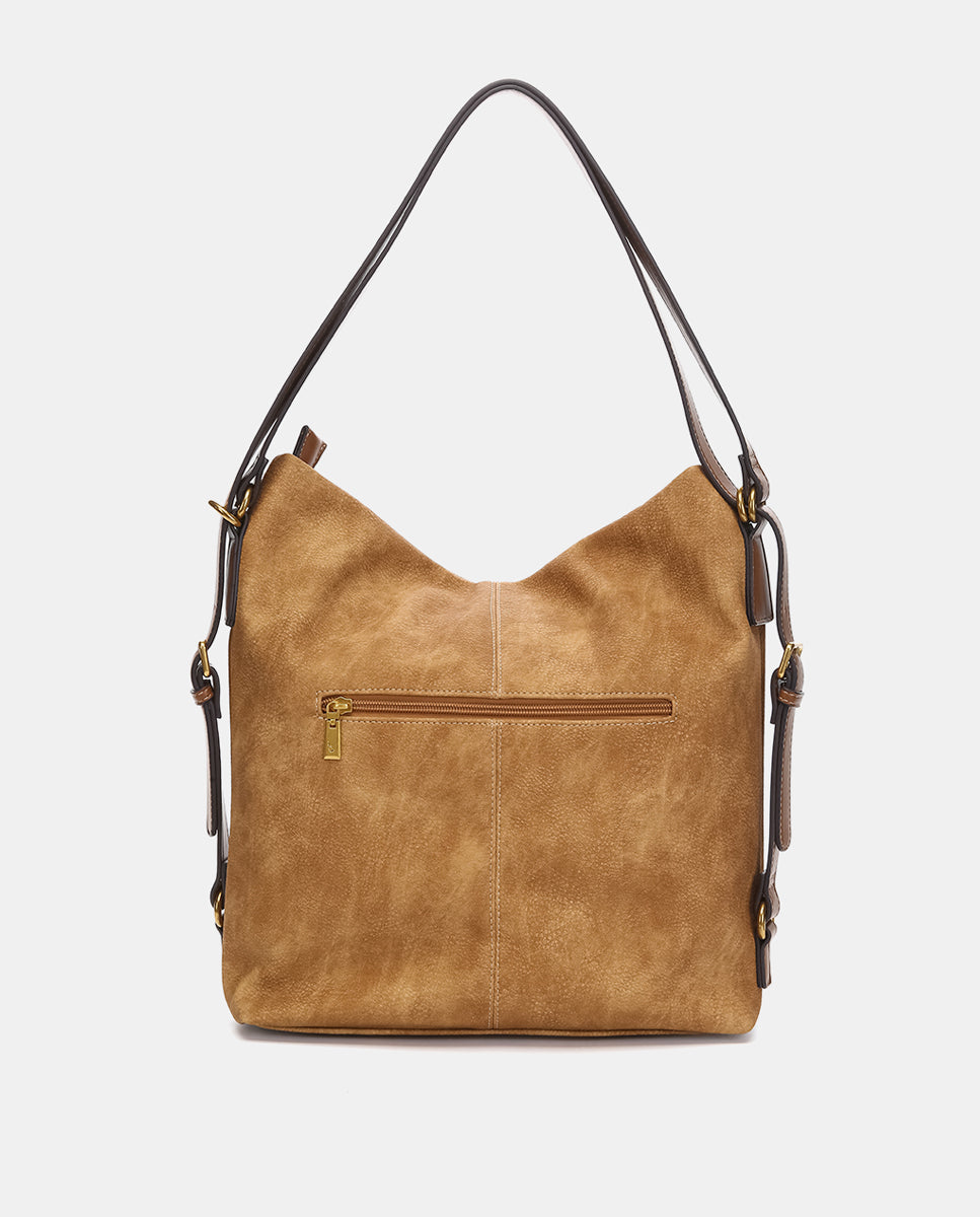 Women's convertible backpack, made from recycled materials, with a classic, simple, and timeless design that adapts to your everyday life. Practical and versatile, it's ideal for those looking for functionality and style. Its main features are: