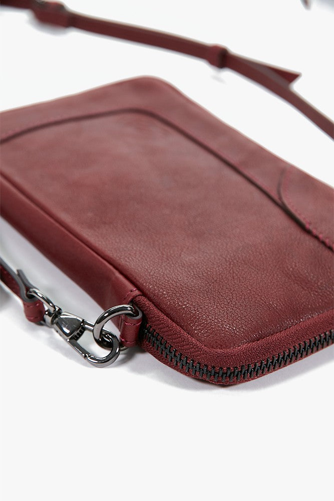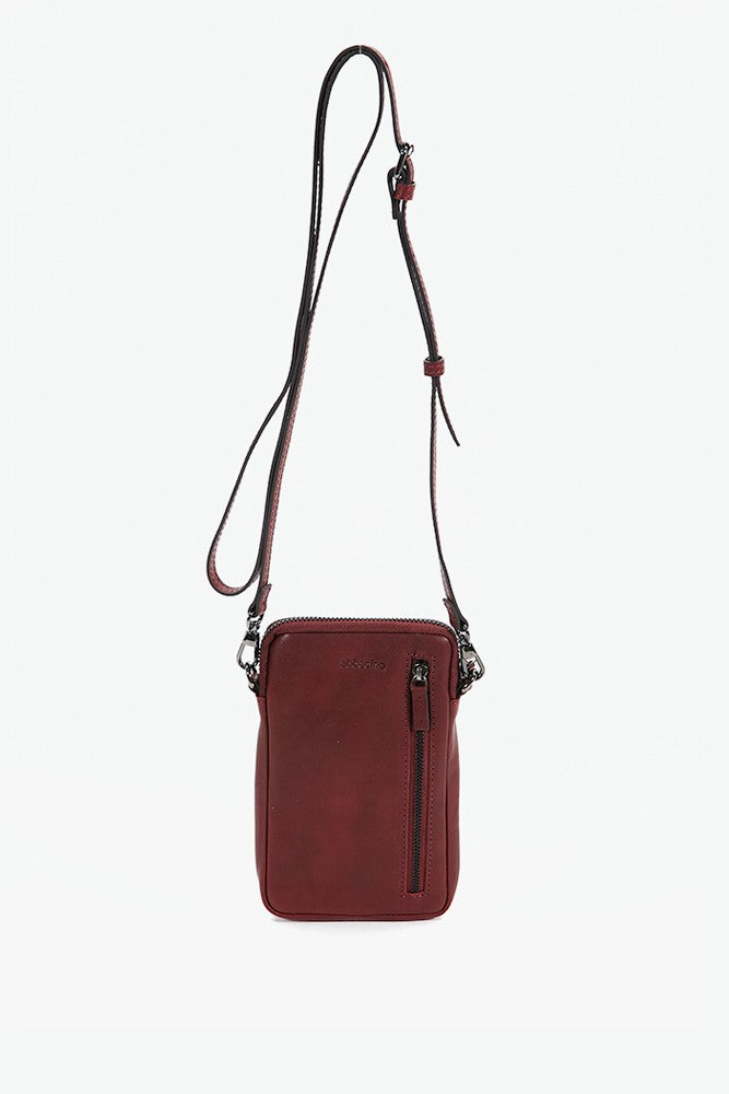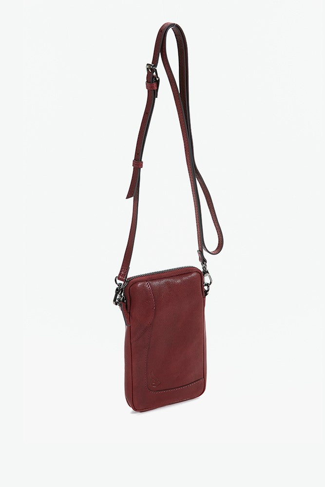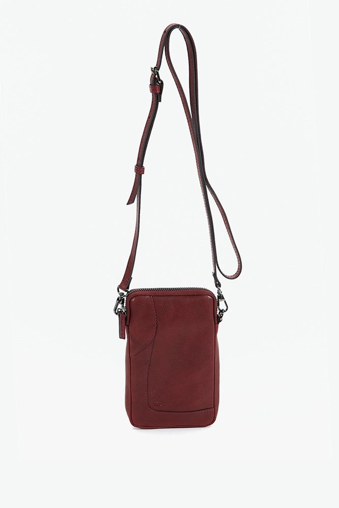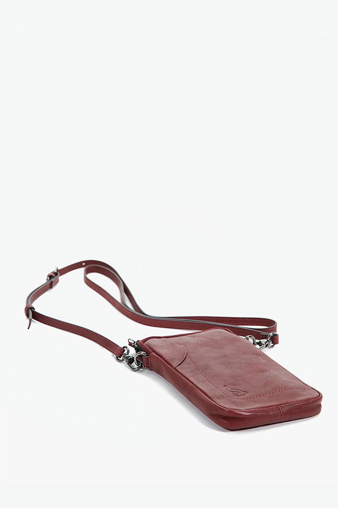 Women's burgundy leather mobile phone bag