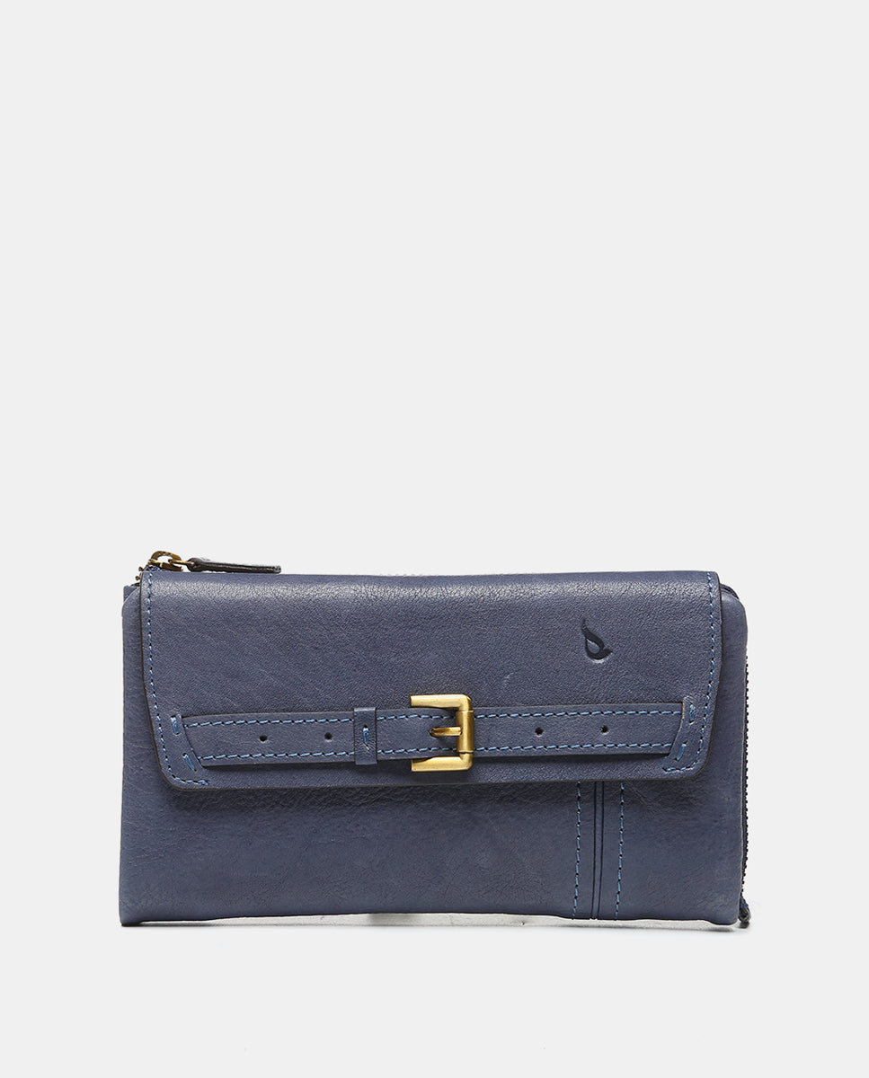 Large women's leather wallet with a design that stands out for its front flap closure, which features a decorative gold buckle. Elegant and functional, it's ideal for those looking for organization and style. Its main features include: