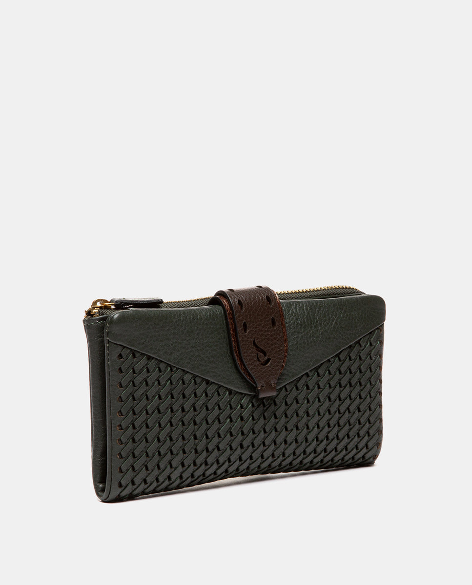 Large women's wallet crafted from premium leather, featuring suede details on the front and a contrasting color closure. Ideal for those seeking functionality and style. Its main features include: