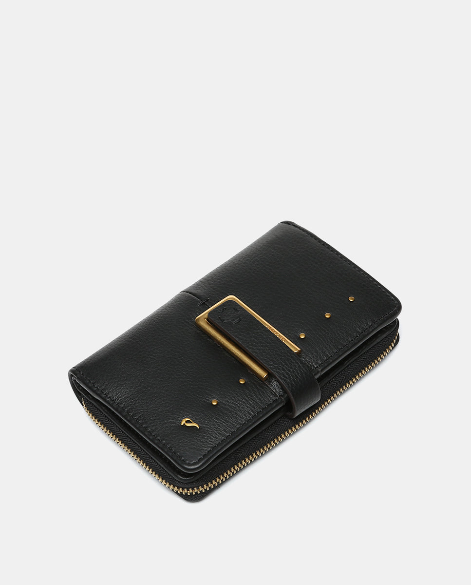 Medium women's wallet crafted from premium leather, with an elegant and contemporary design that stands out for its large hardware and rivets on the front. Functional and sophisticated, it's ideal for those looking for stylish organization. Its main features include: