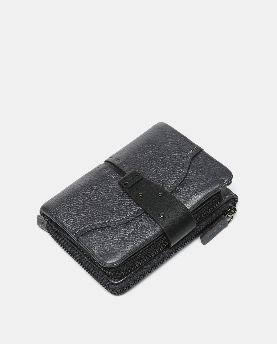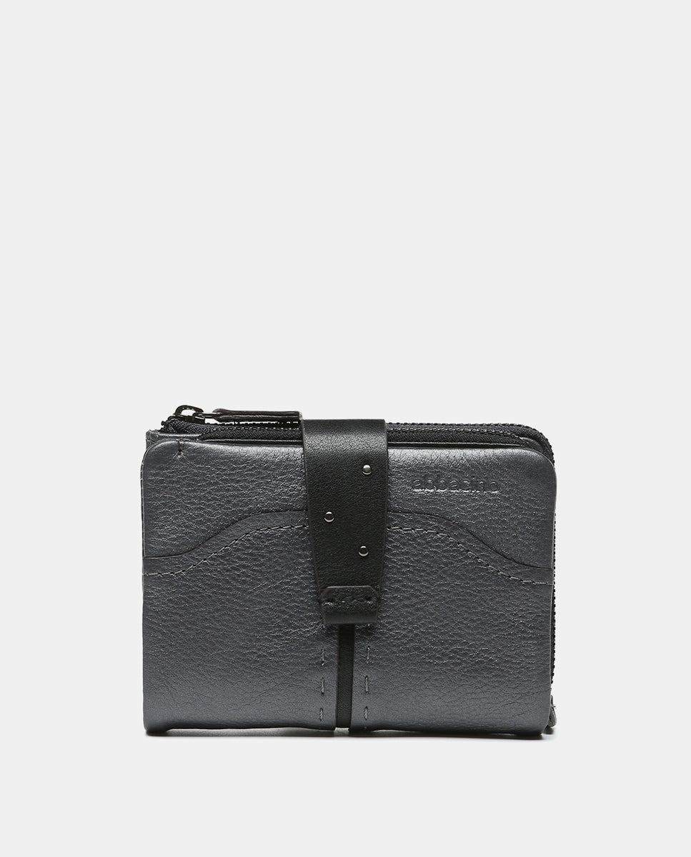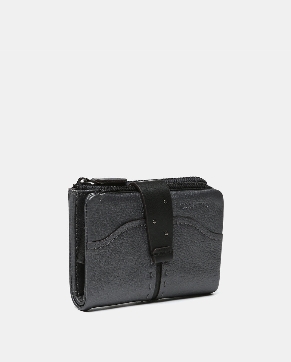 Small women's wallet made of cowhide leather, combining two shades and featuring metal studs on the closure. Compact and functional, it's perfect for those seeking style and organization. Its main features include: