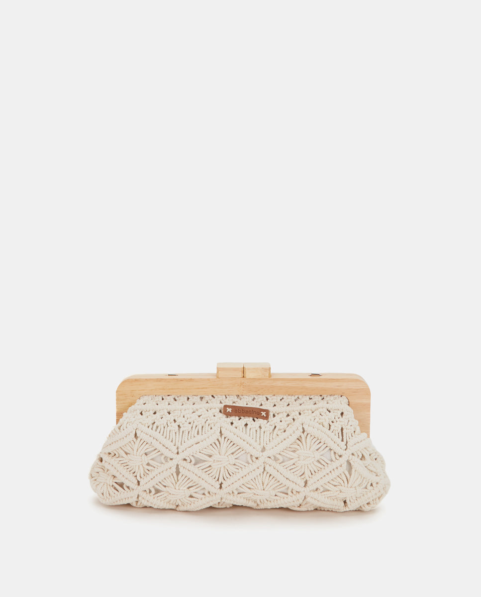 Women's clutch made from a combination of macramé and wood. This model stands out for its distinctive braided fabric that creates an attractive geometric pattern. A very versatile option that adapts perfectly to both daytime and nighttime looks. Its main features are: