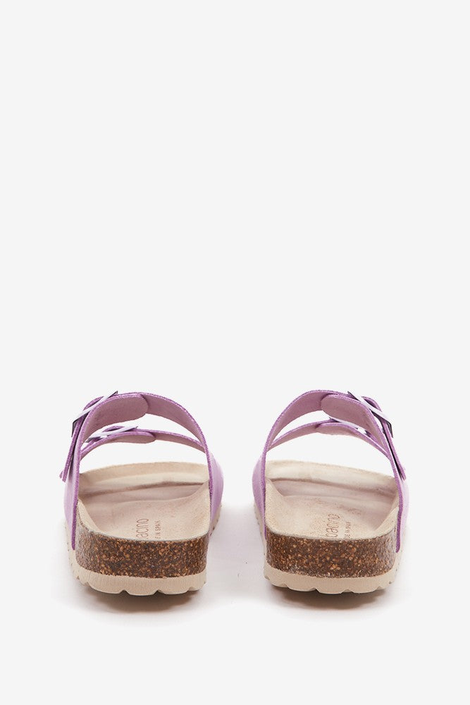 Women's BIO split leather sandals with buckles. A classic design that is ideal for adding a casual and carefree touch to your summer looks. This model fits perfectly to the foot thanks to its adjustable side buckles. In addition, its padded split leather sole provides extra comfort and step after step (EVA sole).