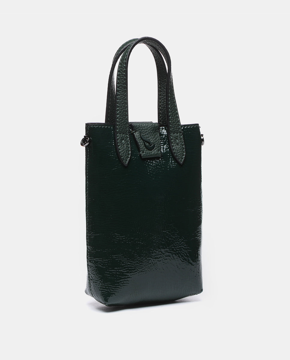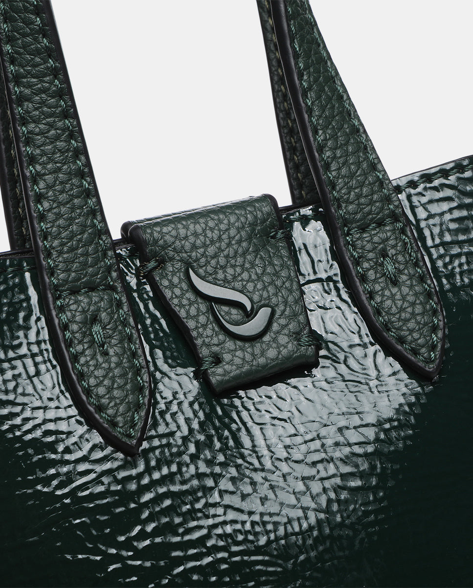 Mini handbag made in patent leather. A new fabric that is making a strong comeback this season. This model is perfect for those users who are looking for a daring accessory with which to stand out and add an original touch to their looks.