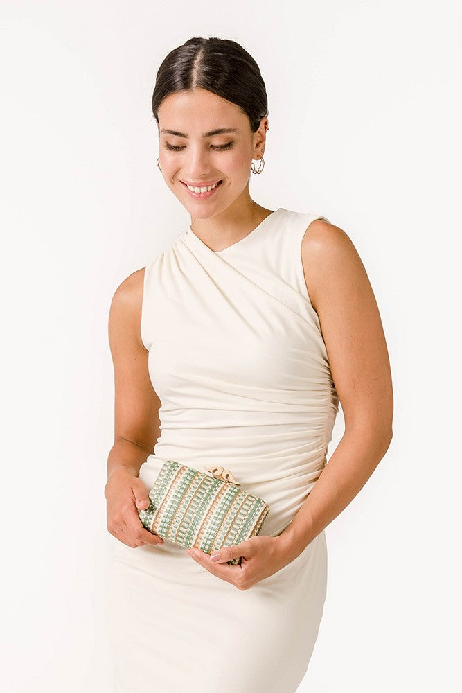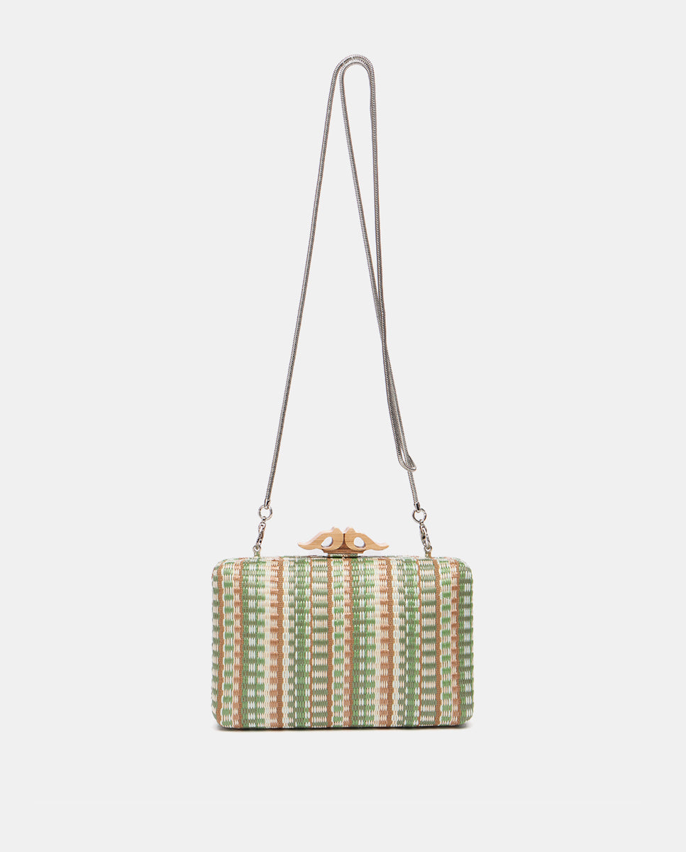 Square party clutch with geometric print and 3D closure with Abbacino logo. A special handbag for events in which to carry your essentials. Its main features are: