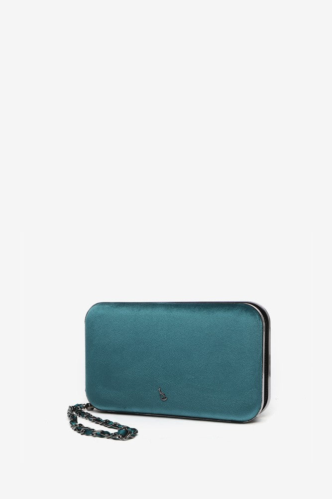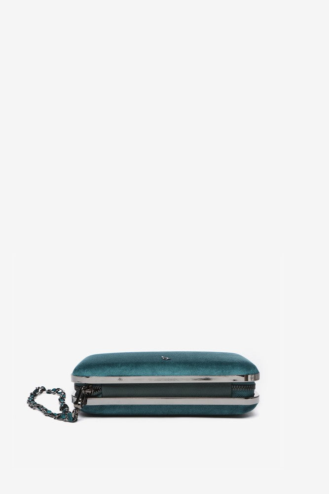 Rectangular-shaped women's clutch made from velvet and dyed in the season's trendiest colours. A design for events and special occasions, it features a top zip closure and includes a chain handle for added convenience. The interior is fully lined.