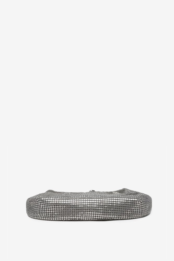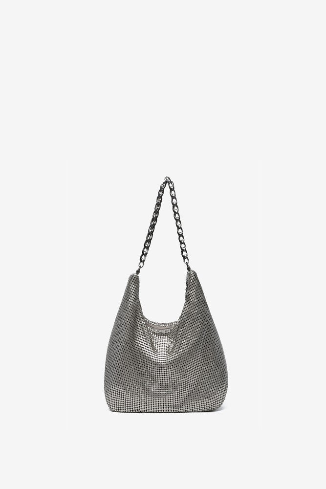 Metallic mesh party hobo bag in silver