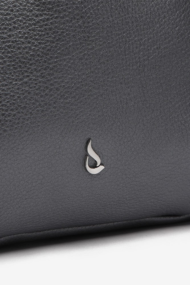 • On the front, it has the brand's logo on a small metallic appliqué.