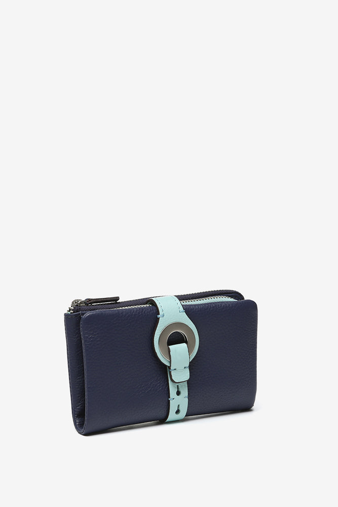 Medium women's wallet made of leather with metallic details. Original and eye-catching, this model combines different color tones, all of which are on trend this season. Its main features are: