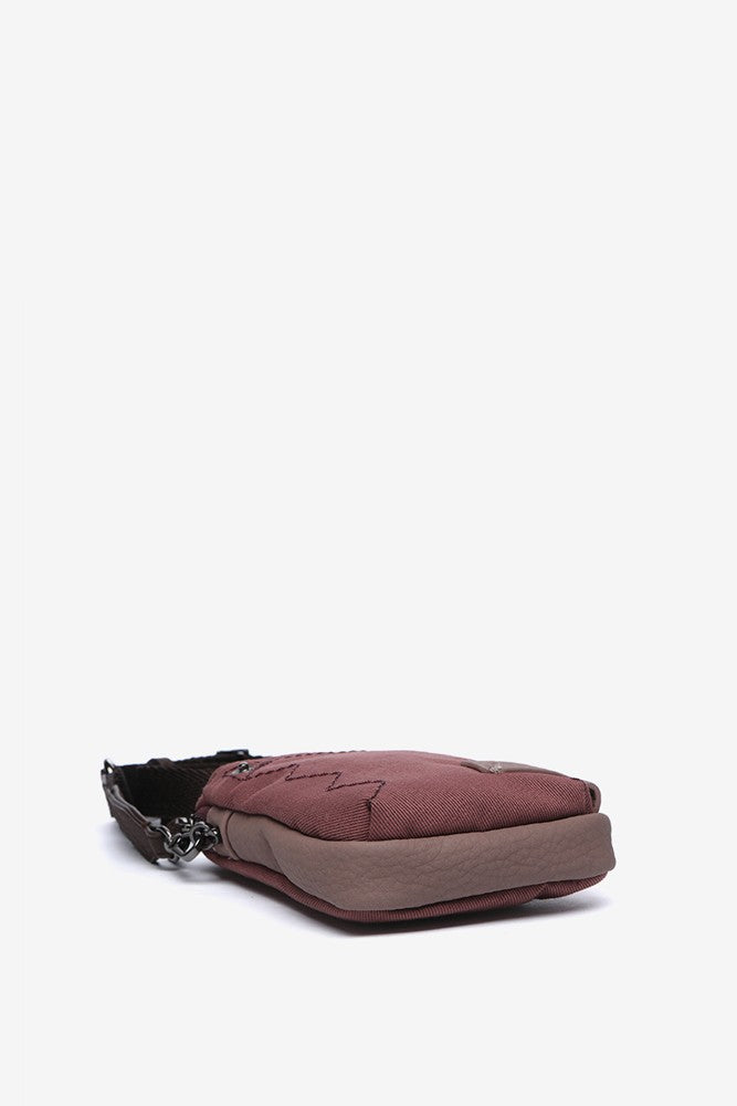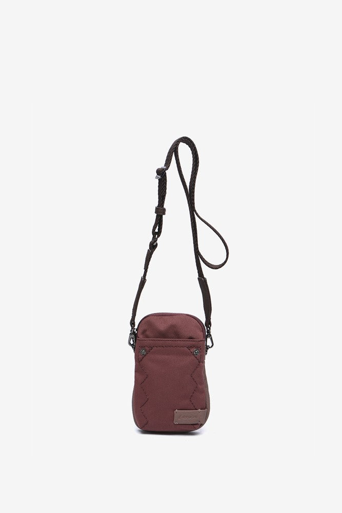 Mobile phone bag in burgundy recycled materials