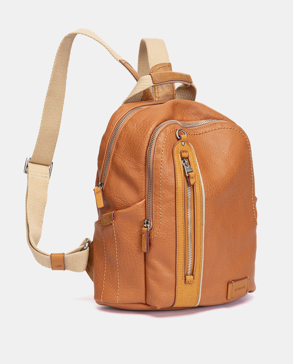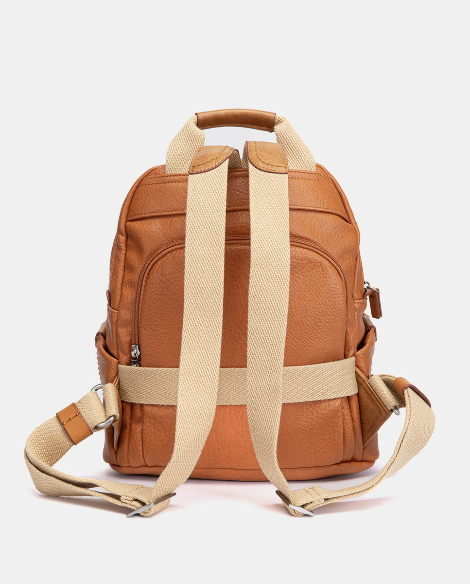Backpack made from recycled materials, with a textured finish and visible stitching that enhances its versatile design, perfect for any occasion. Its main features are: