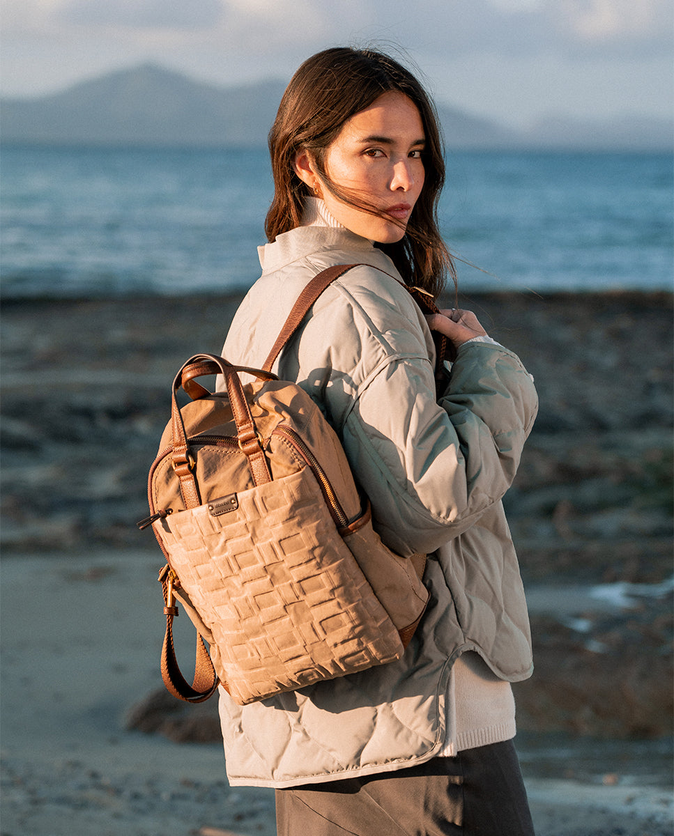 Camel recycled nylon backpack