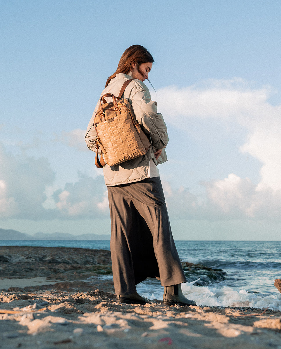 • Made from recycled quilted nylon, respectful of the environment.